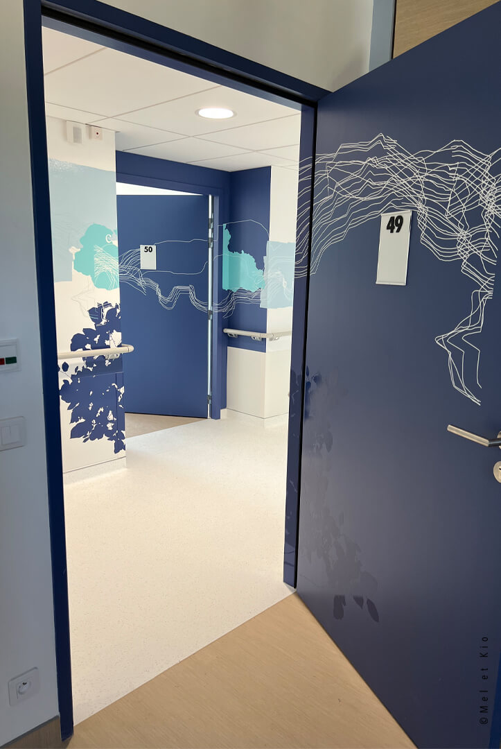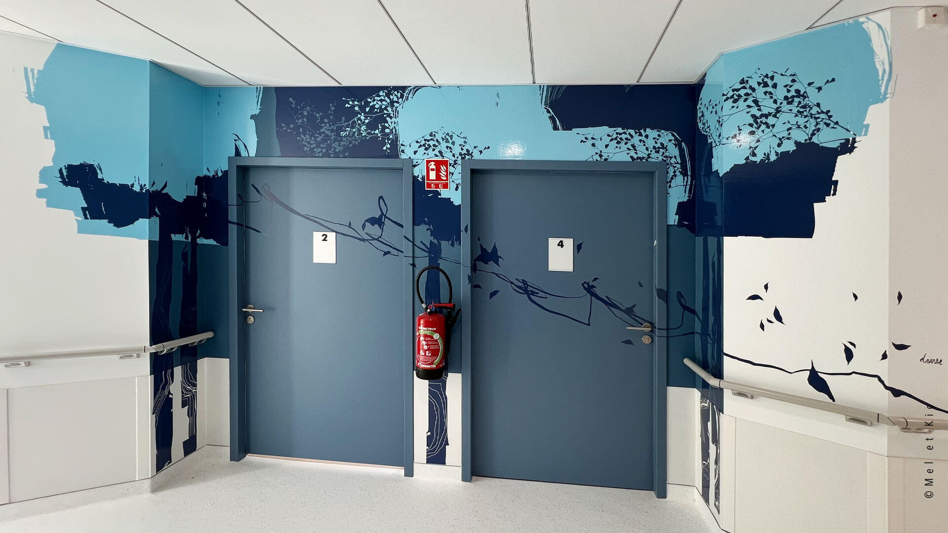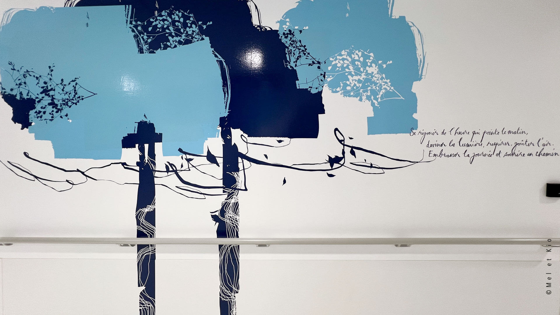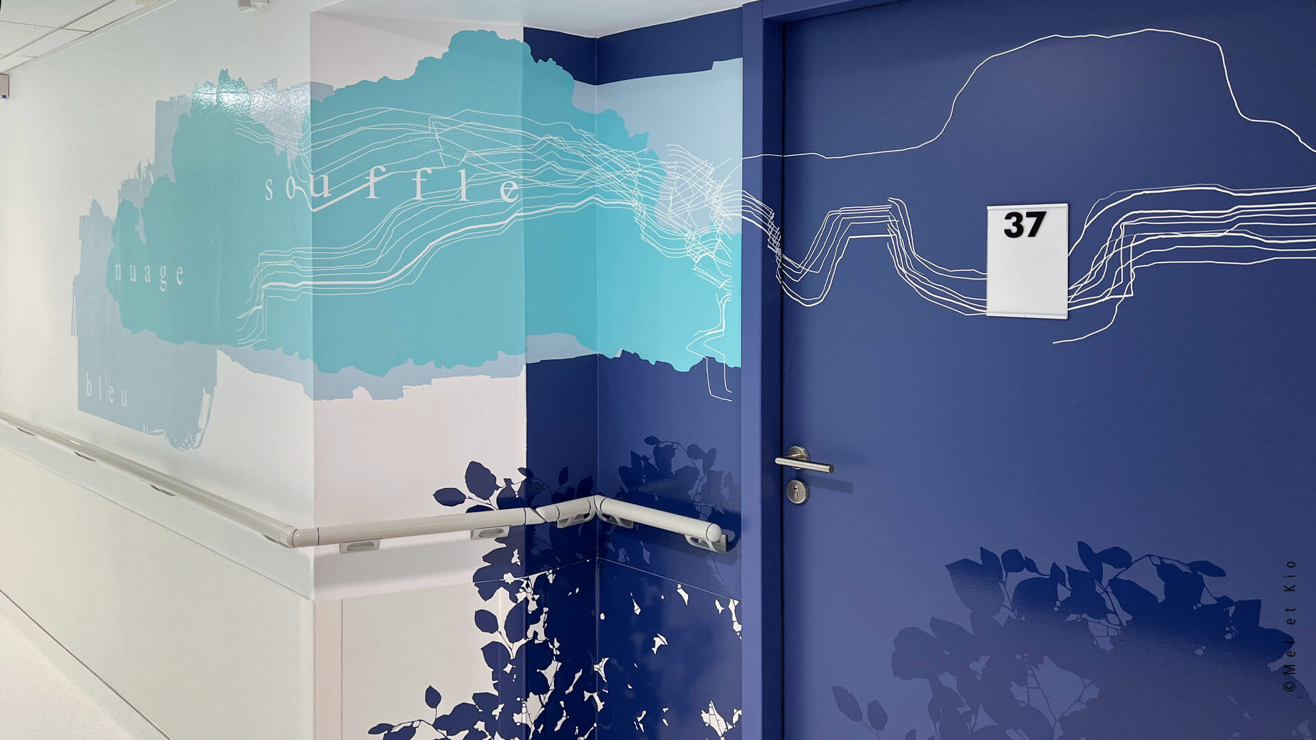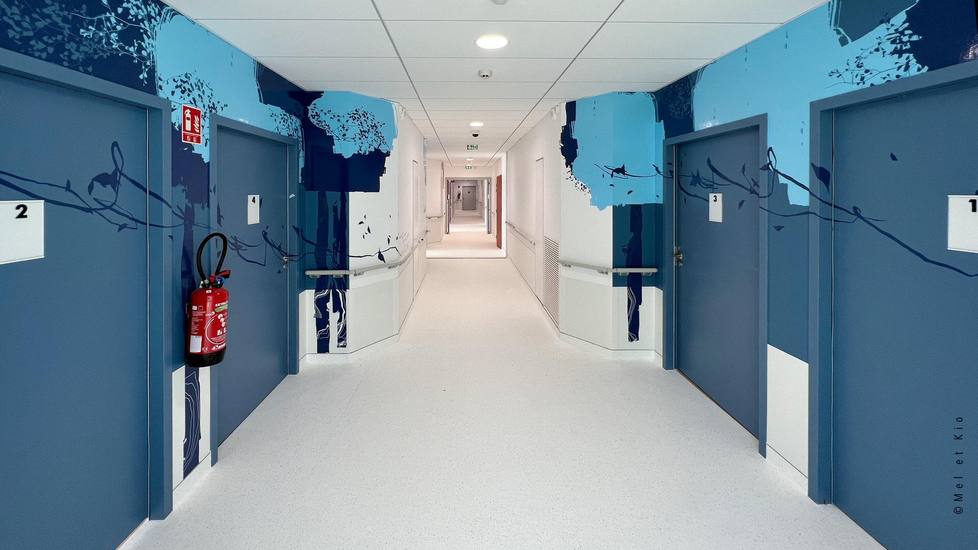 L’EAM de Hauteville Lompnes souhaitait travailler à son identité mural. L’établissement d’accueil de santé spécialisé à commandé aux artistes Mel et Kio des fresques et scénographies sur mesure. La signature identifiable de l’art mural des artistes ré-enchante les murs de la maison médicalisé pour adultes handicapés. Le duo spécialiste en conseil et création d’identité murale propose ici d’identifier les espaces de vie des patients à travers ces fresques.