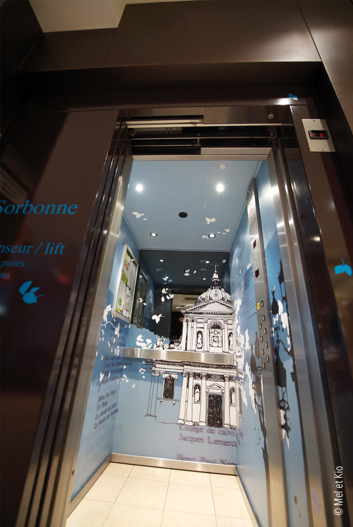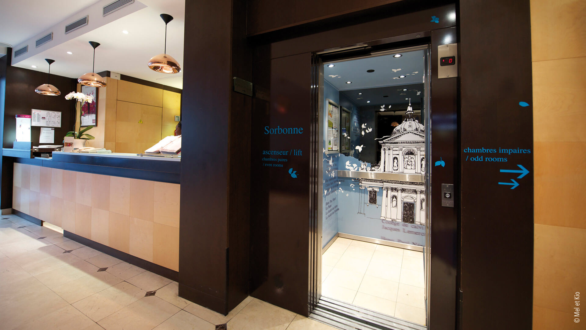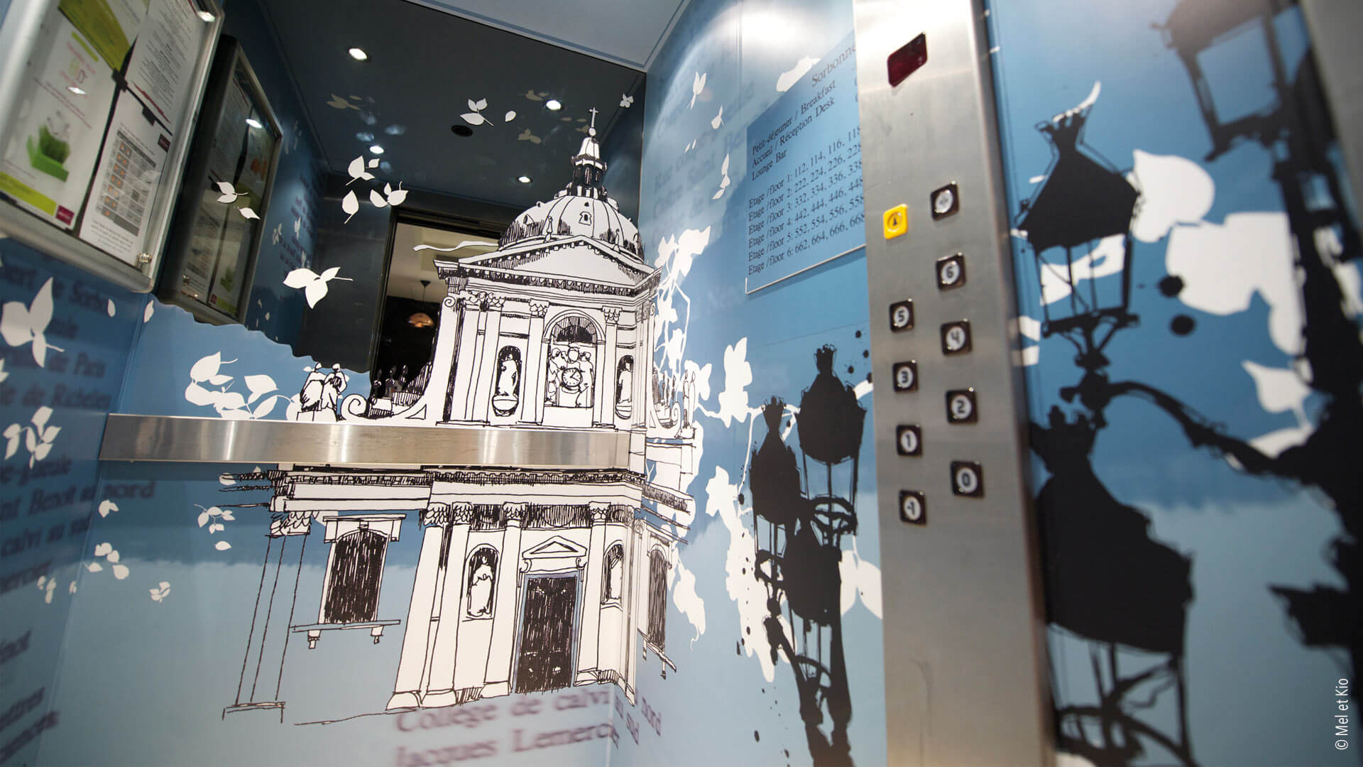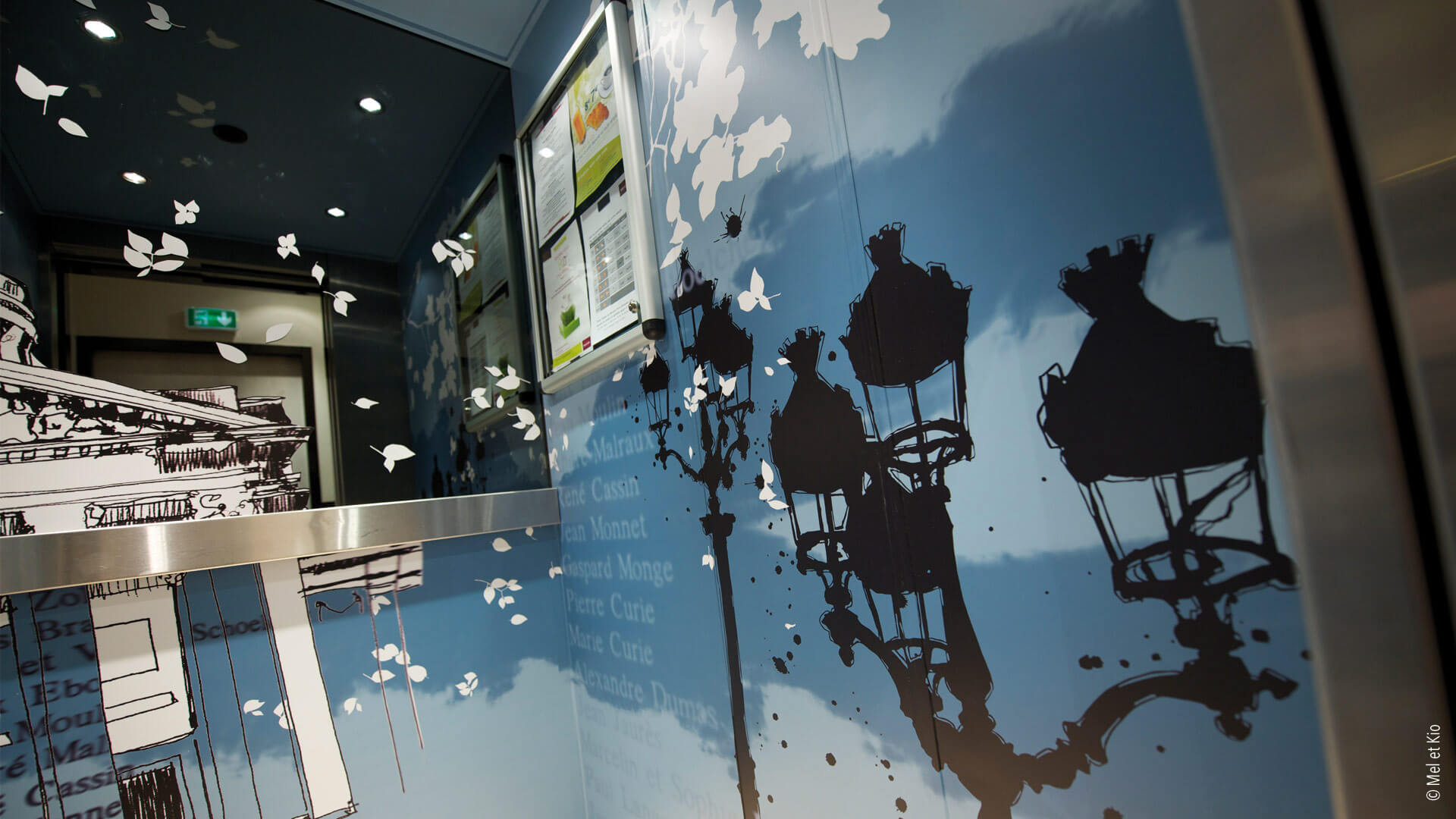 Décoration murale des ascenseurs de l’hôtel Mercure