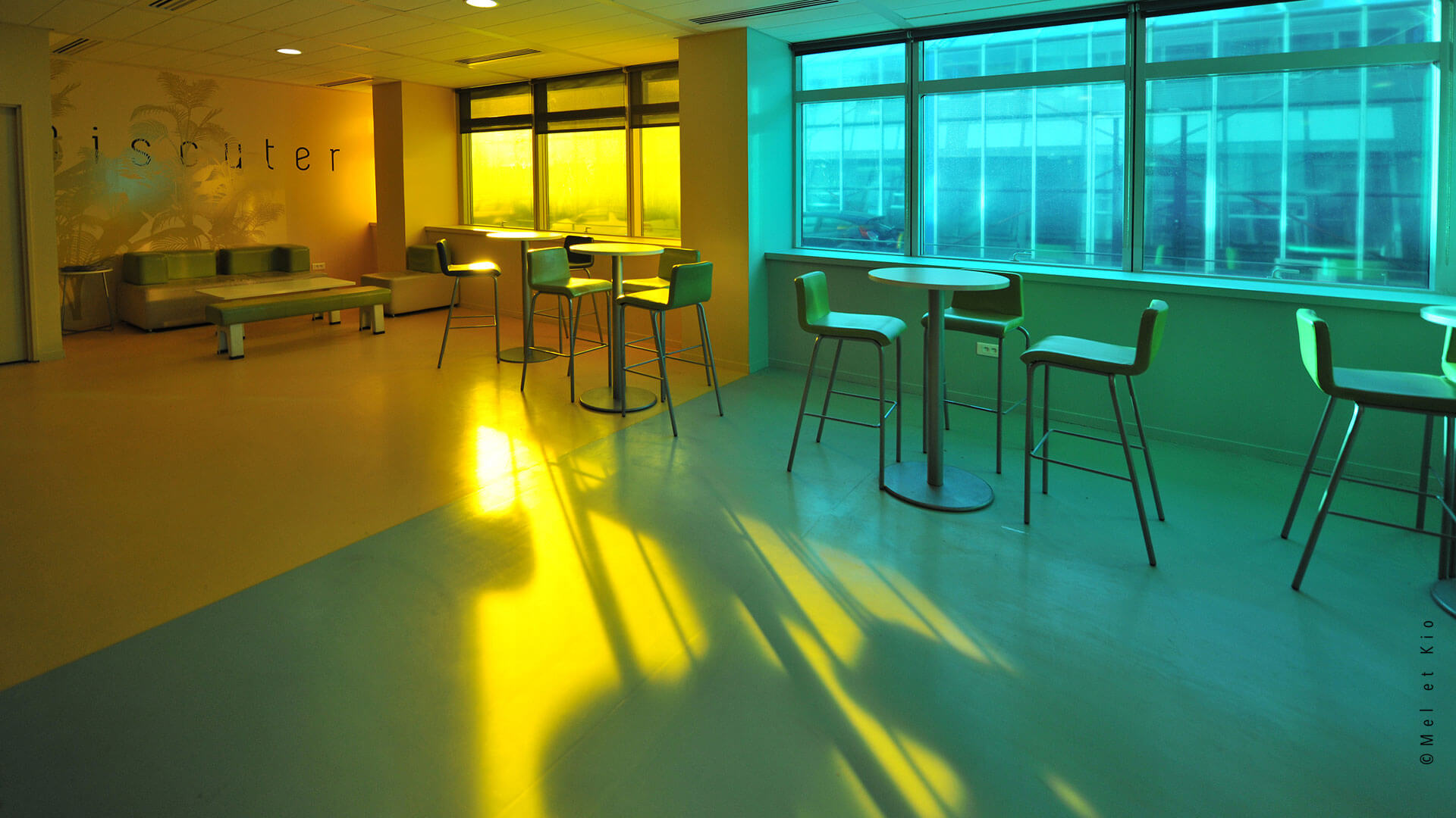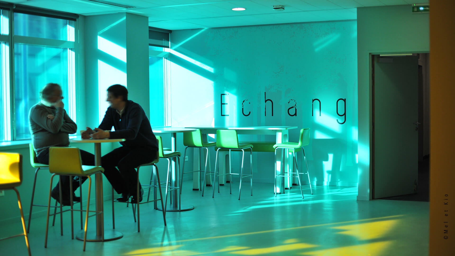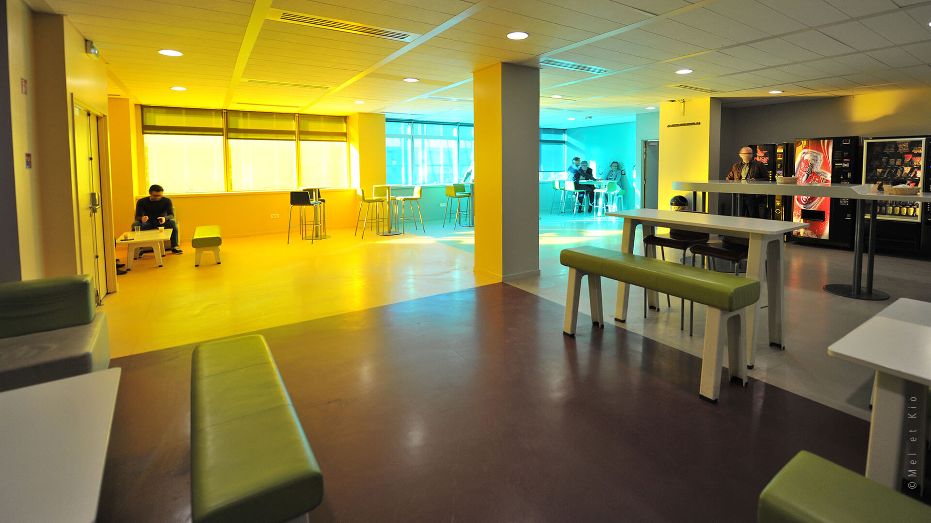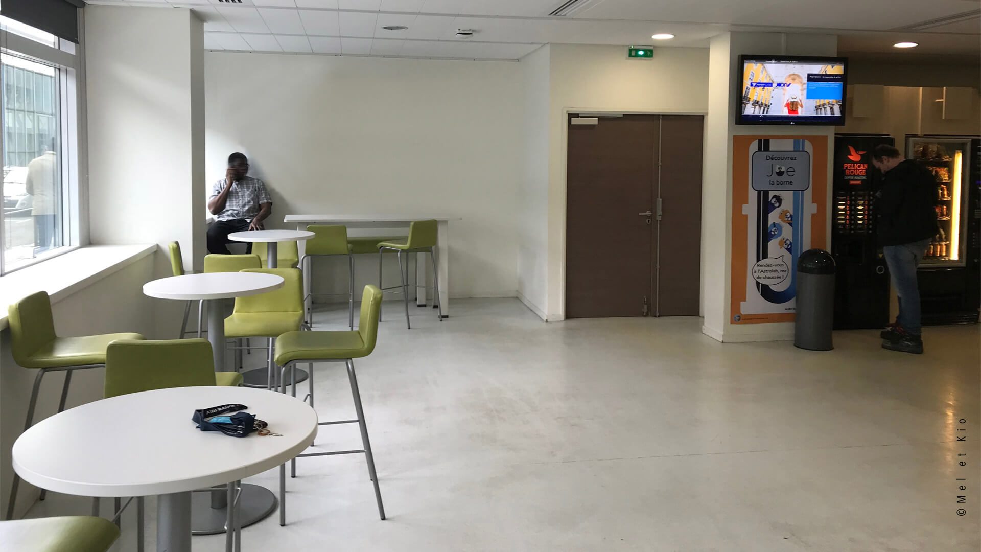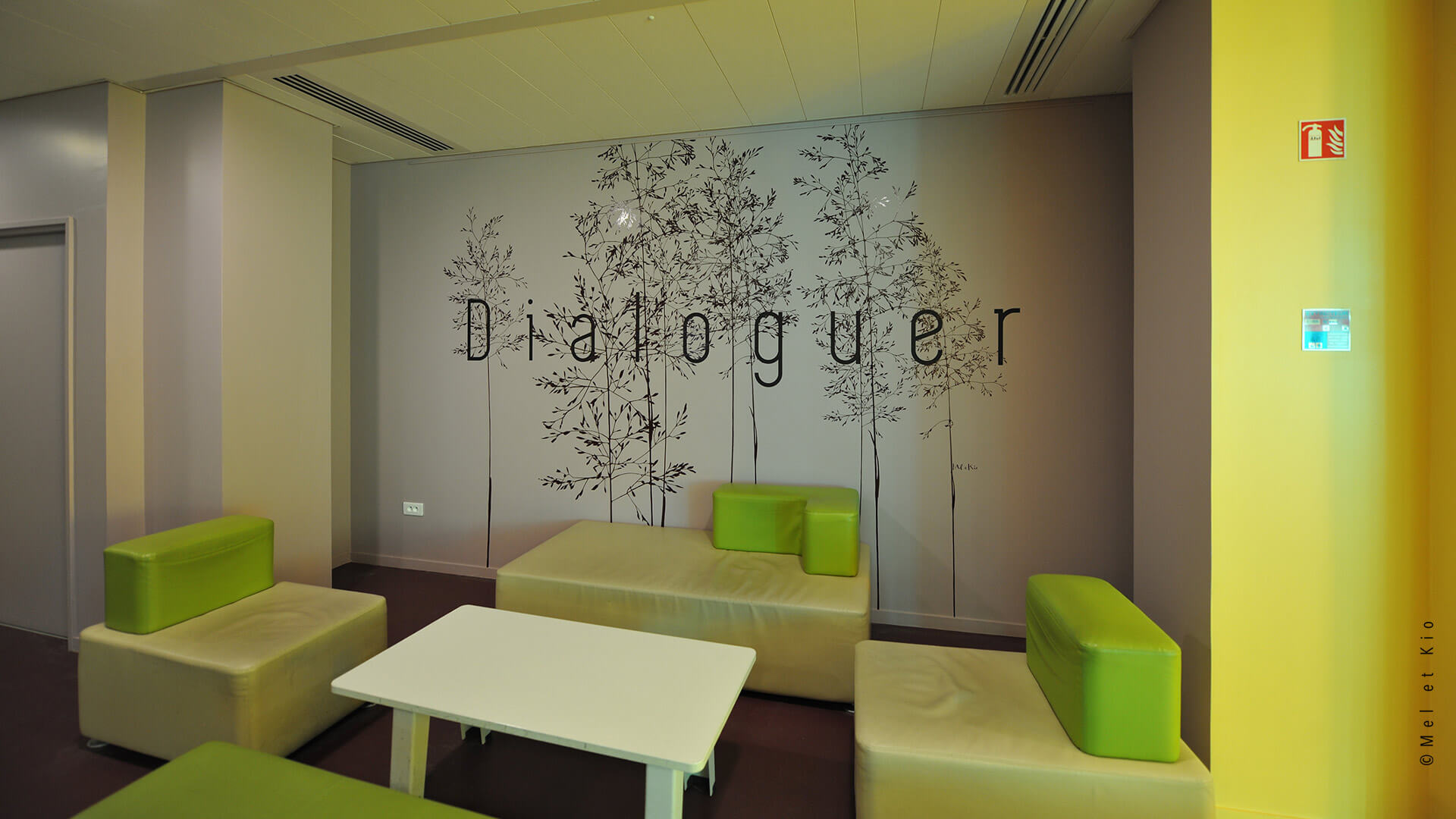 Décoration murale et vitrophanie dans la cafétéria du bâtiment Astrolab d’Air France