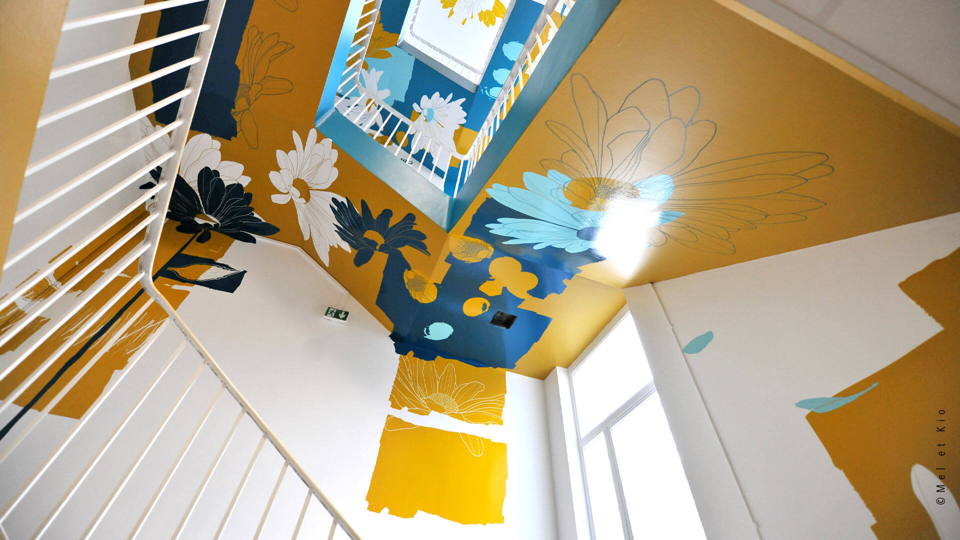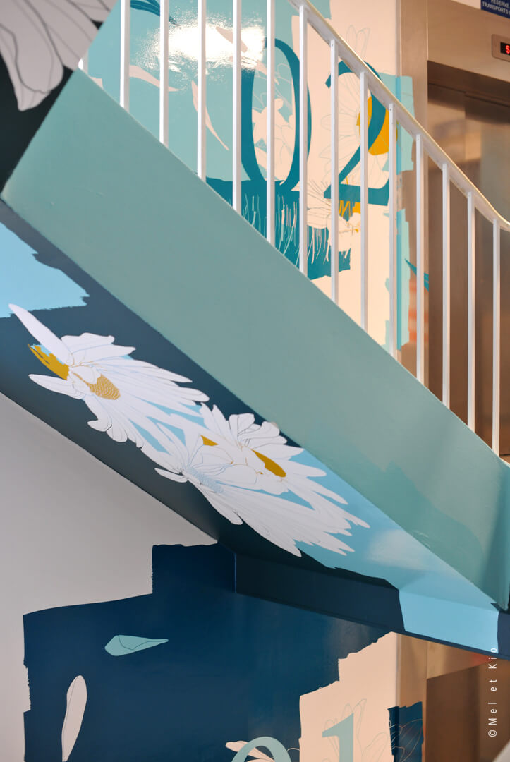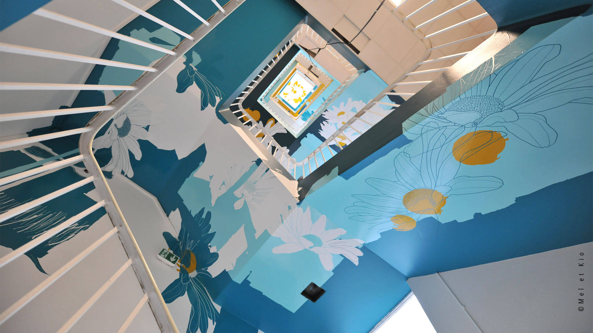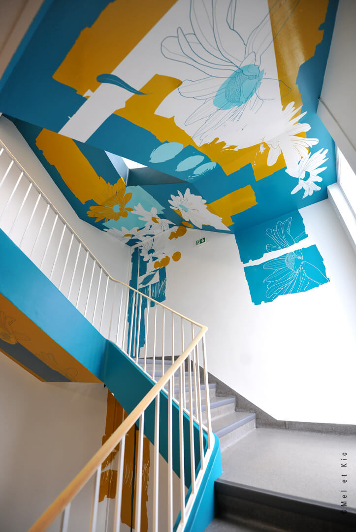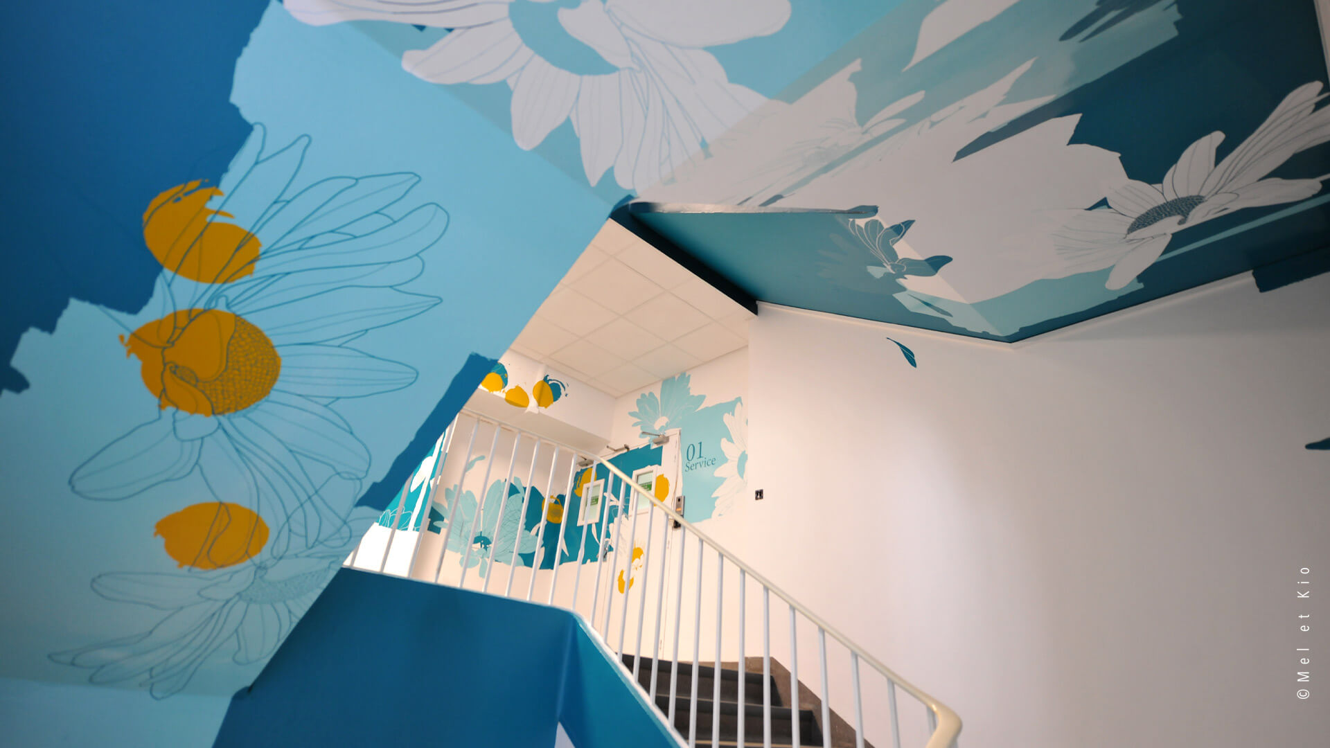 Art mural Hôpital pédiatrique A.Trousseau | APHP, escalier Lainé - Mel et Kio