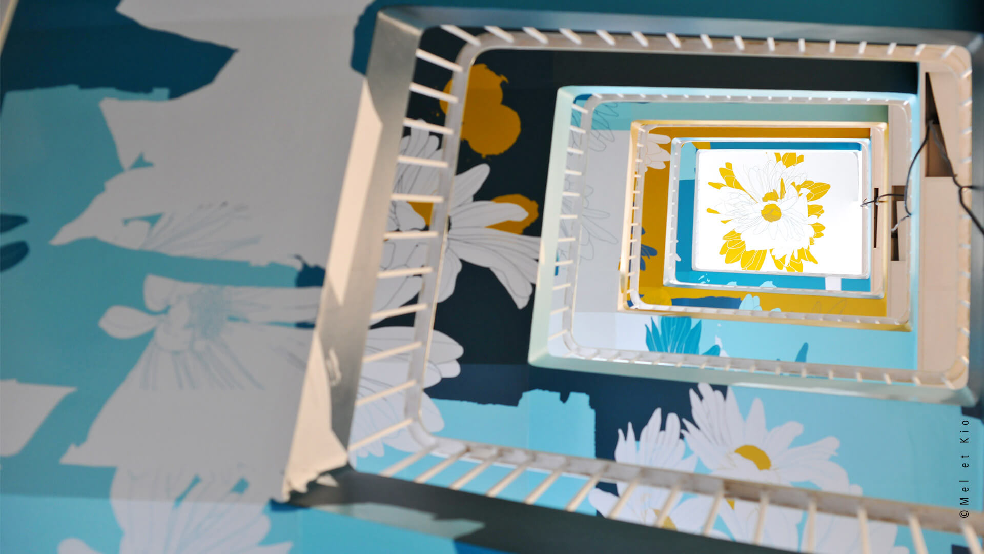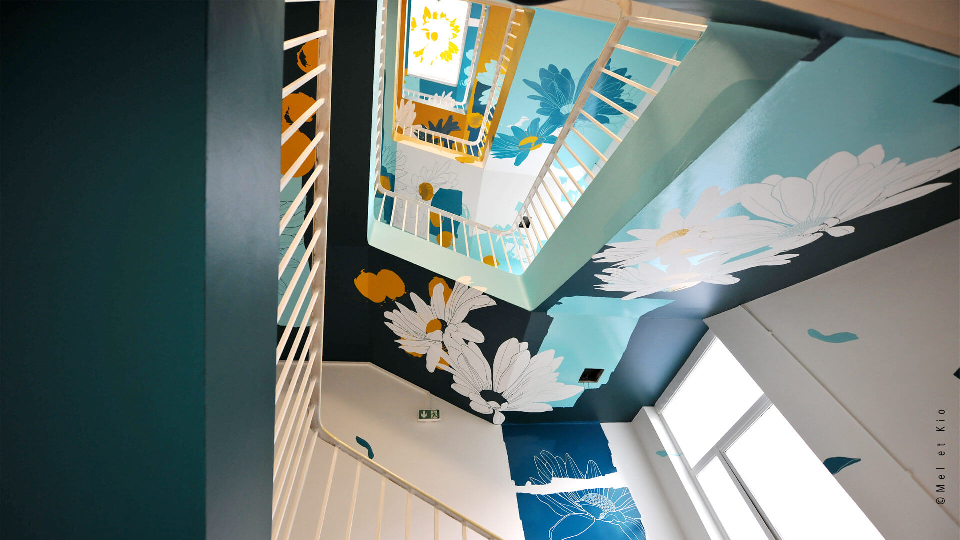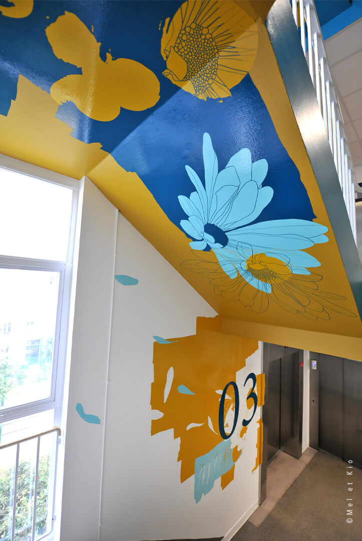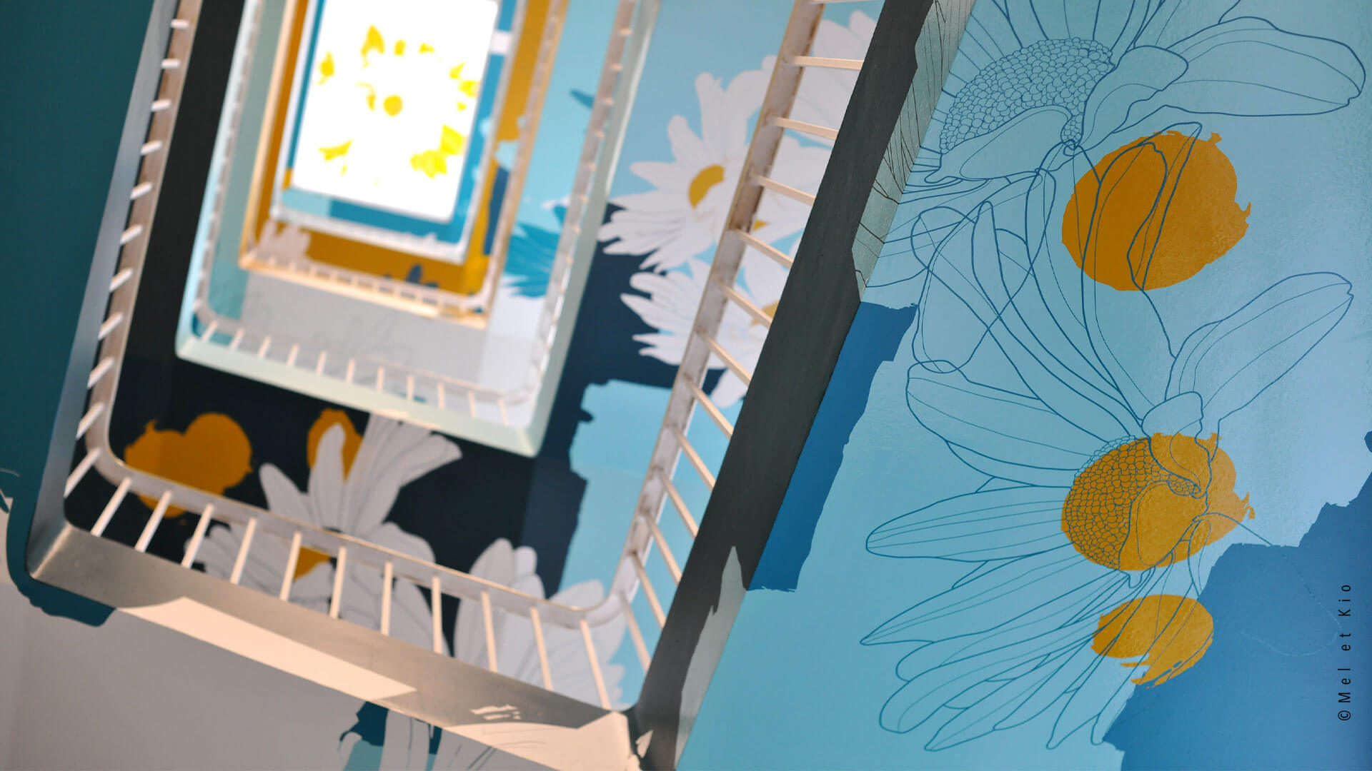 Art mural Hôpital pédiatrique A.Trousseau | APHP, escalier Lainé - Mel et Kio