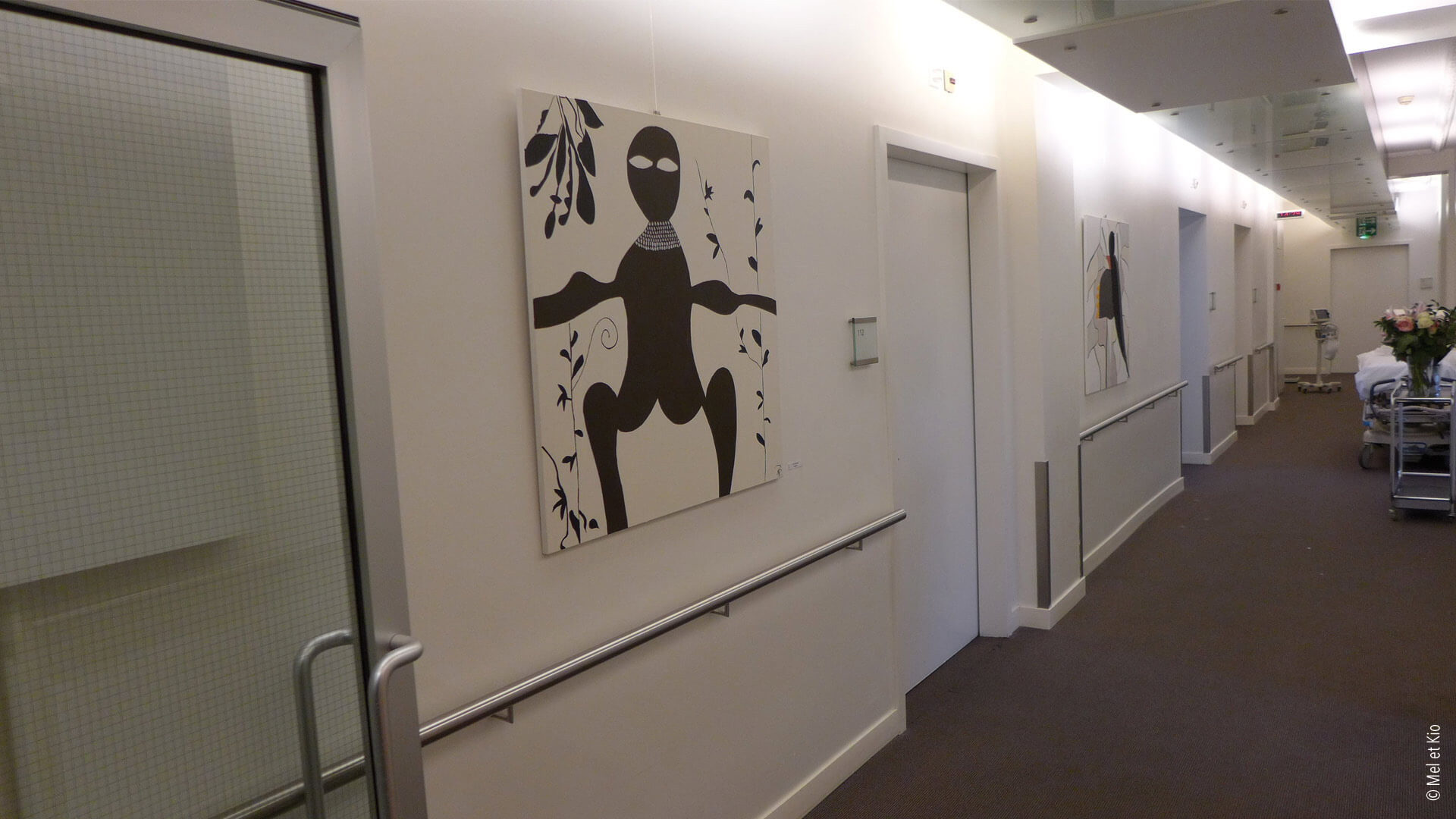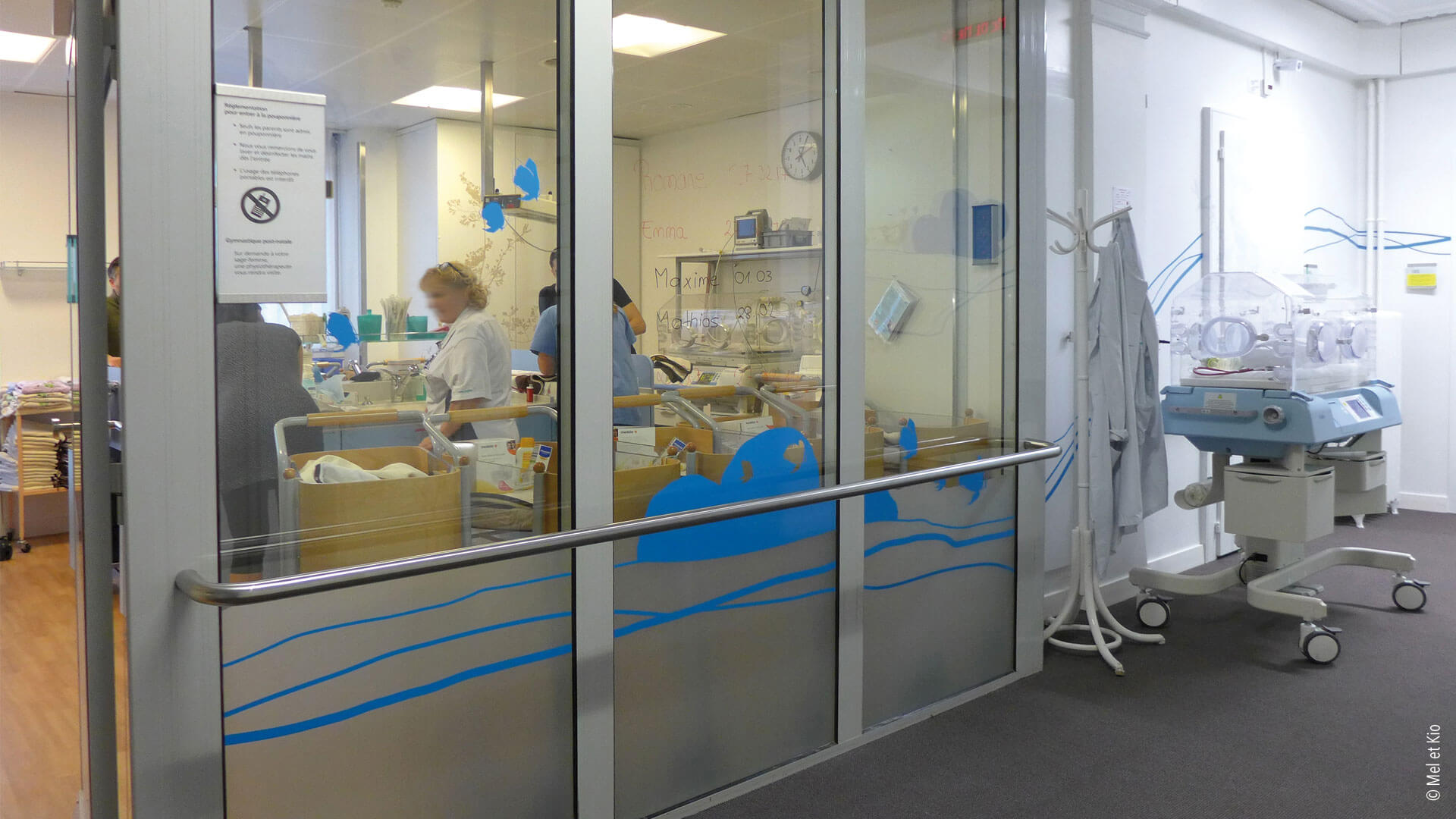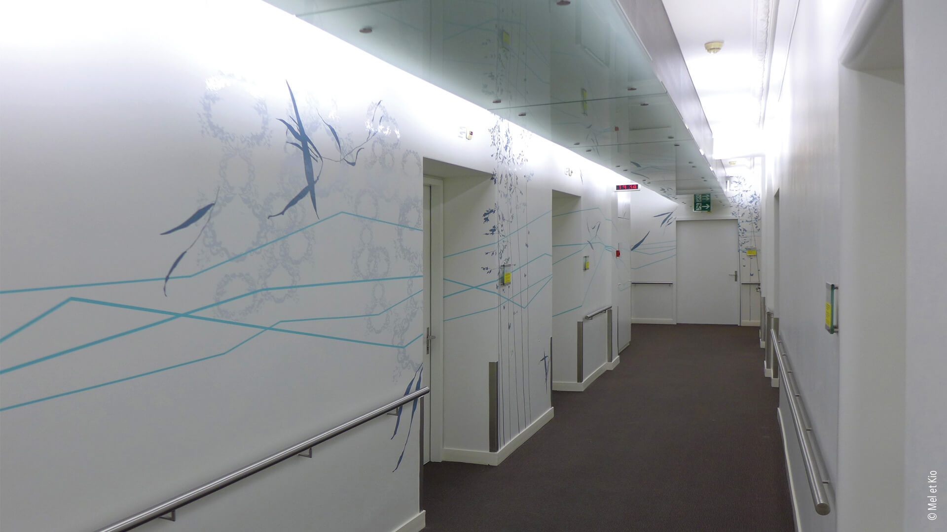 Le design mural de Mel et Kio permet de différencier les deux services de la maternité et de la Chirurgies se trouvant au même niveau de la clinique.
