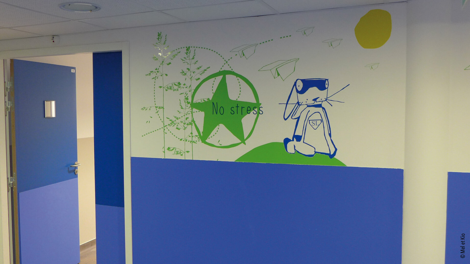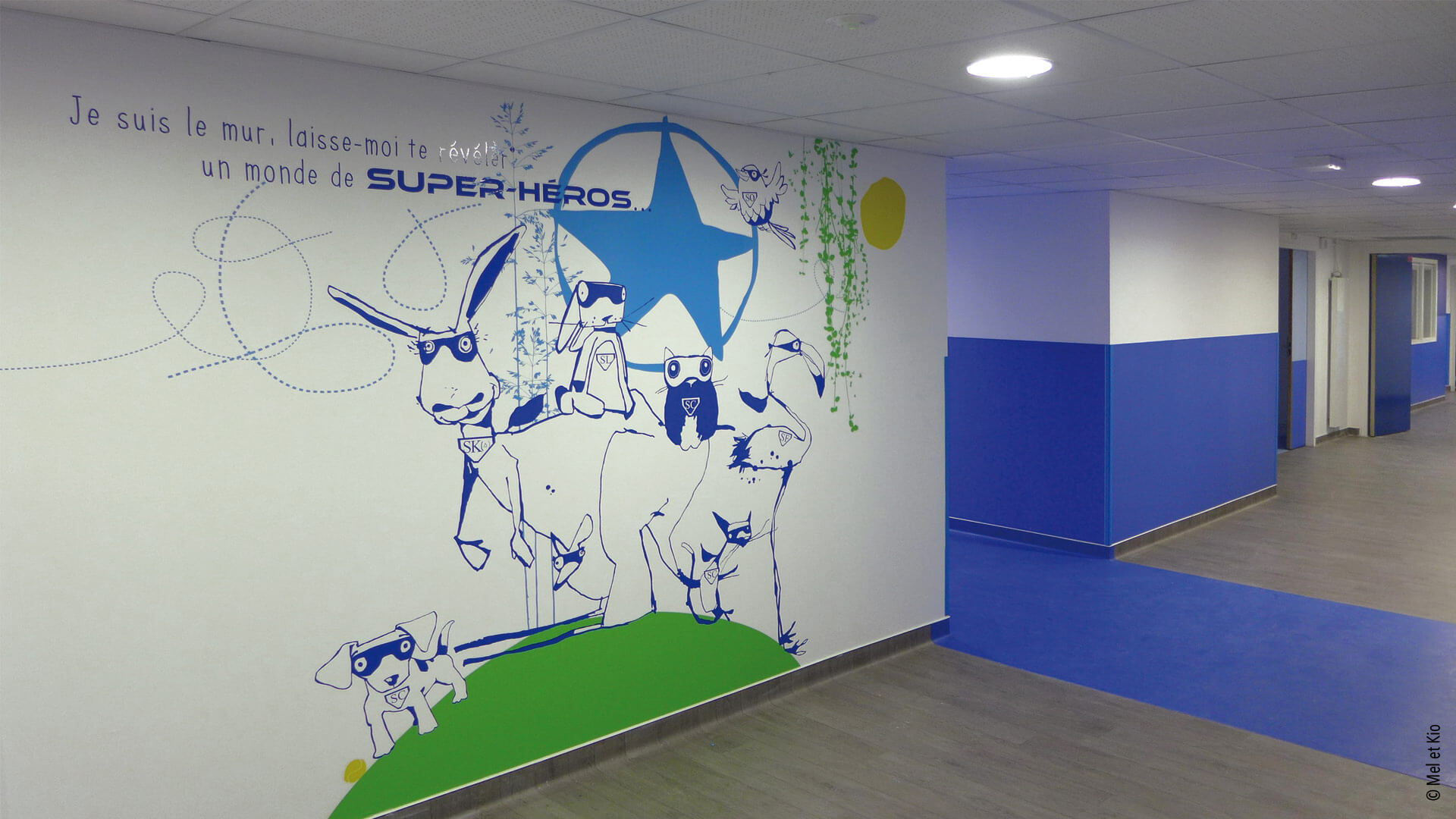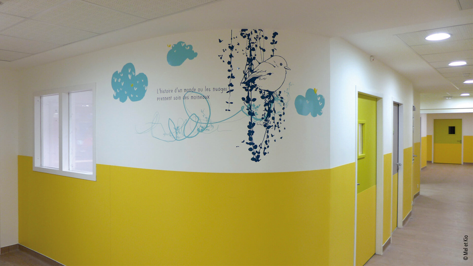 Décorations murales Pédiatrie Alice Blum Ribes à Montreuil UGECAM IDF - Mel et Kio