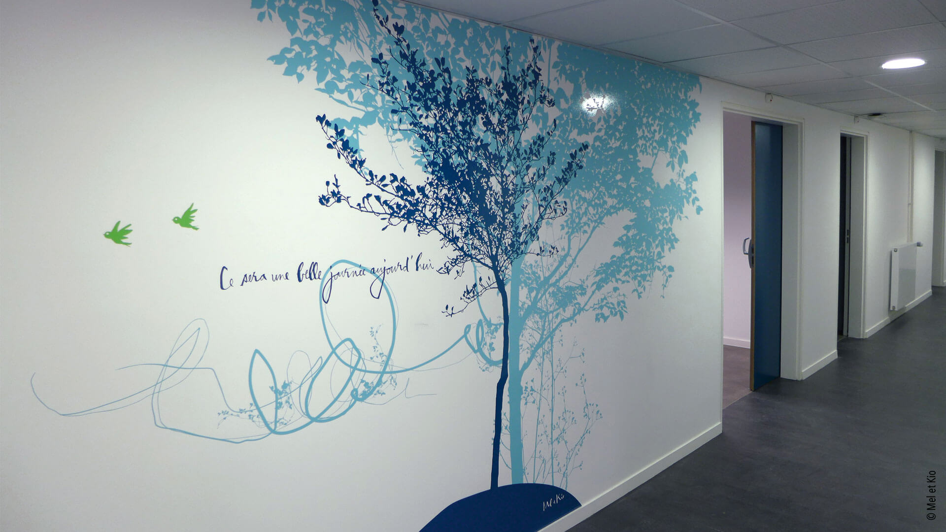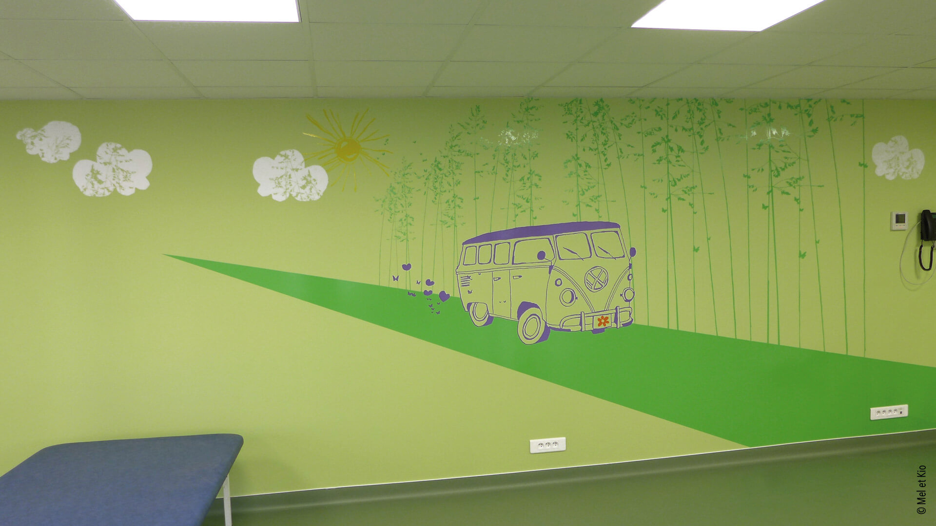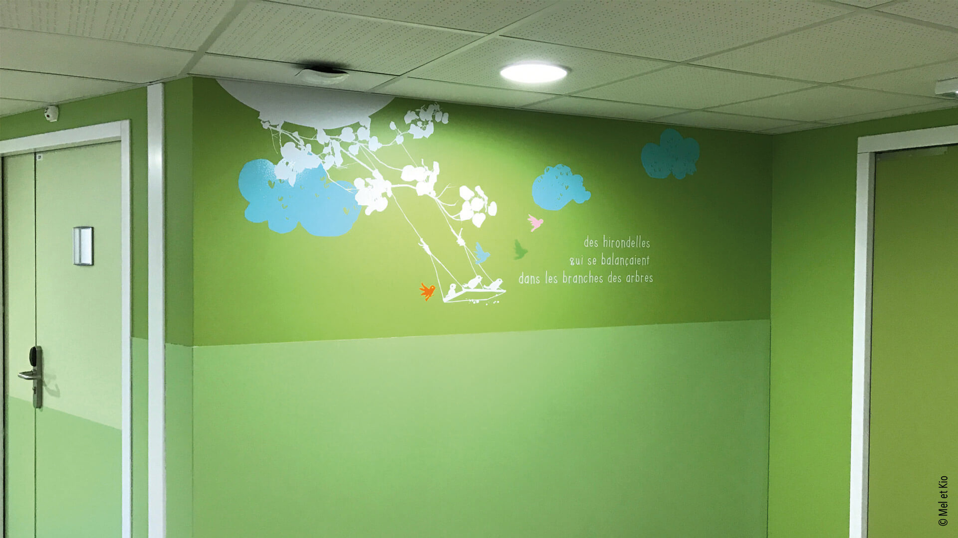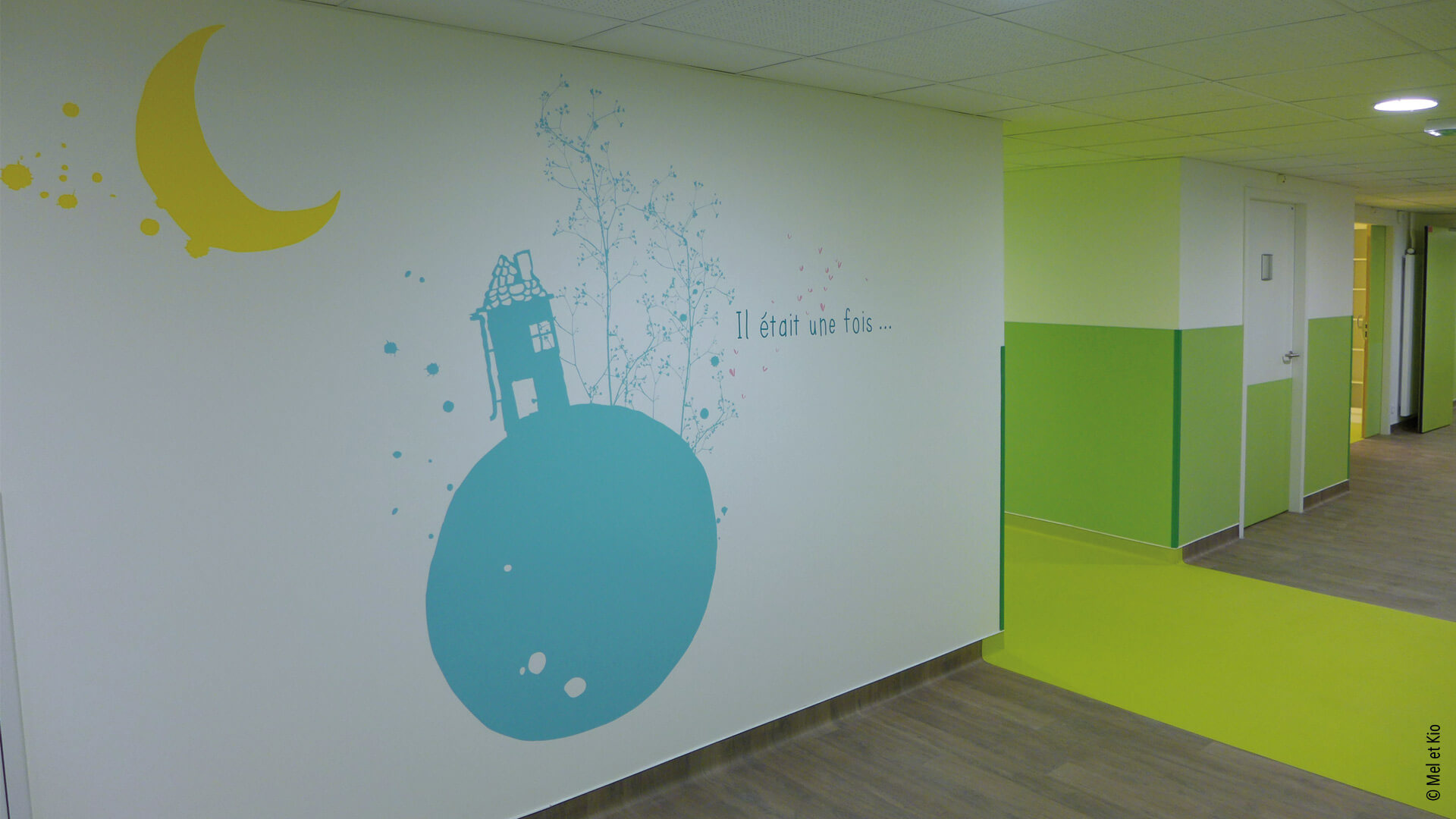 Décorations murales Pédiatrie Alice Blum Ribes à Montreuil UGECAM IDF - Mel et Kio