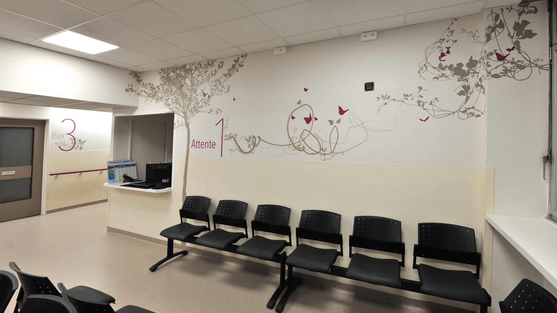 Décorations murales sur mesure pour le service de Consultations de Chirurgie Orthopédique de AP-HP Hôpital Universitaire Pitié Salpêtrière (Paris)