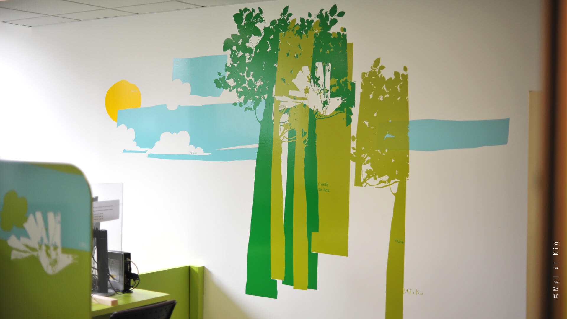 Des illustrations murales artistiques et poétiques sur le thème de la forêt.