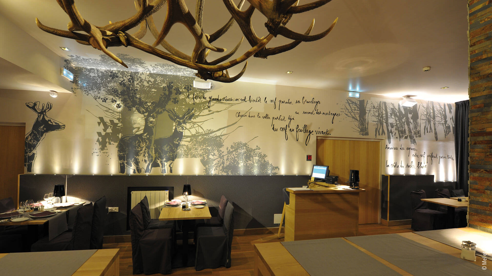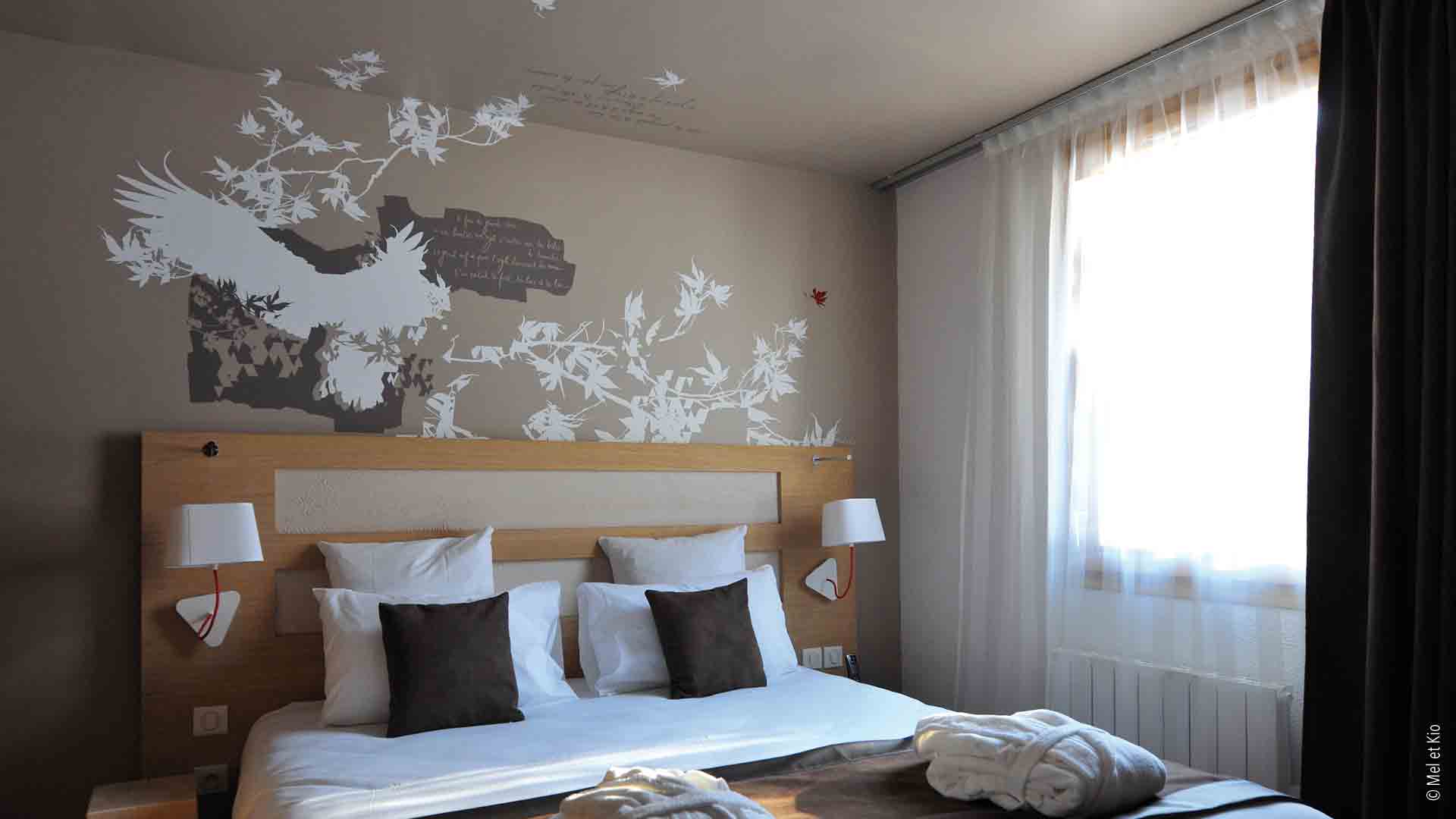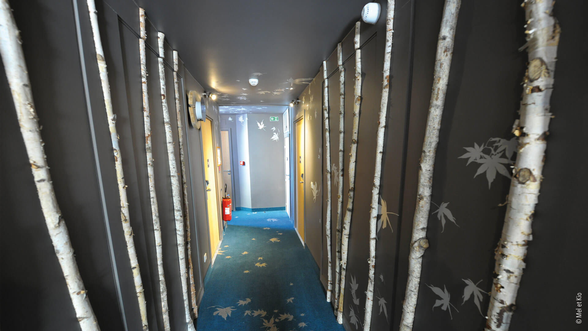 La commande du groupe hôtelier était de renforcer l’identité de ce lieu. Des décorations murales intérieures sur murs et plafonds dans l’ensemble de l’hôtel ainsi que le design mural dans le restaurant. Textes poétiques sur murs et histoire murales écrites et conçues par le duo d’artistes Mel et Kio spécialisés dans l’identité d’hôtels. Le duo a réalisé des dessins sur murs, des décorations murales dans les chambres, des dessins sur les moquettes dans les circulations, des vitrophanies sur les fenêtres et portes vitrées jusqu’à la conception graphique d’un cahier offert aux clients de l’hôtel. L’identité de l’hôtel a été entièrement conçu et réalisé en collaboration étroite avec l’architecte de cet hôtel.