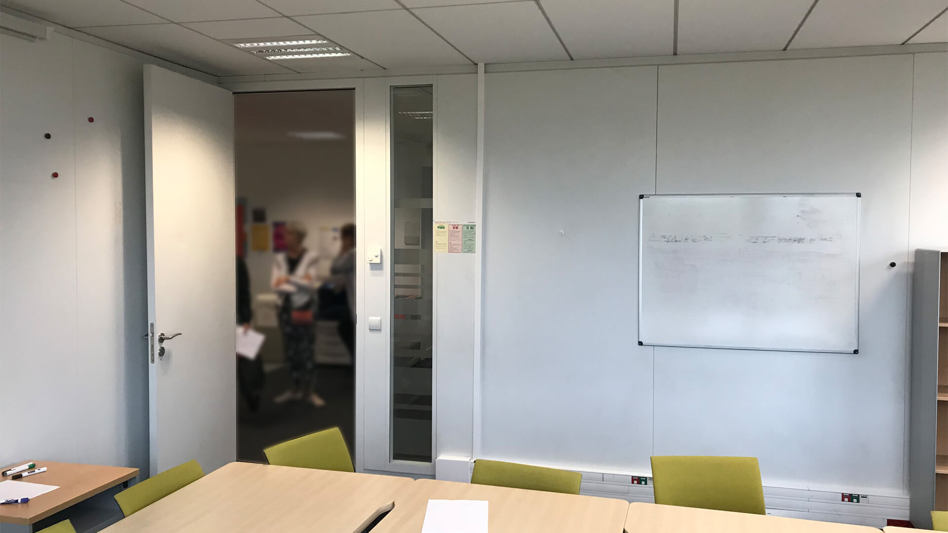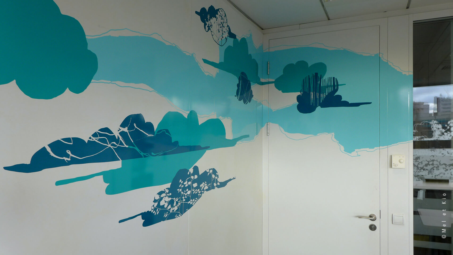 Adhésifs muraux monochromes sur cloisons de bureaux et murs.
