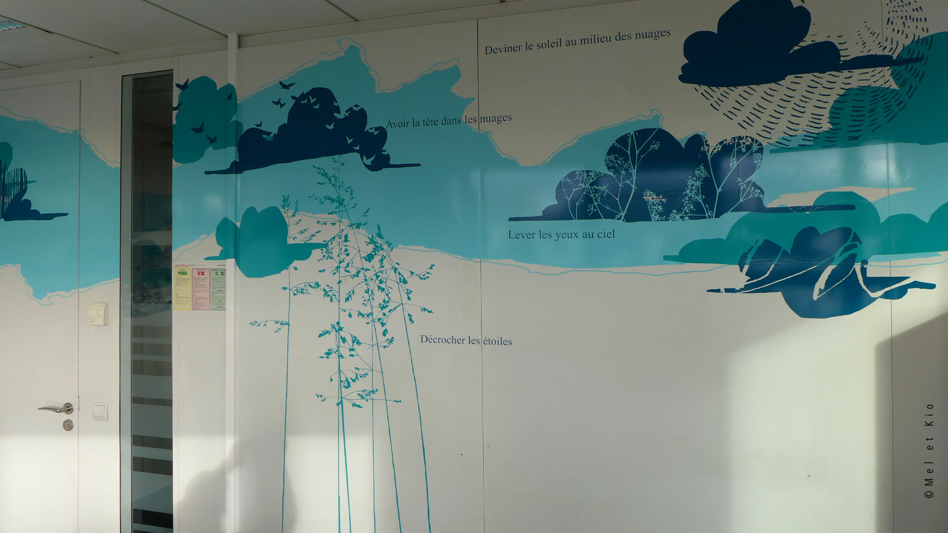 Stickers muraux dans une salle de réunion d'Air France - Mel et Kio