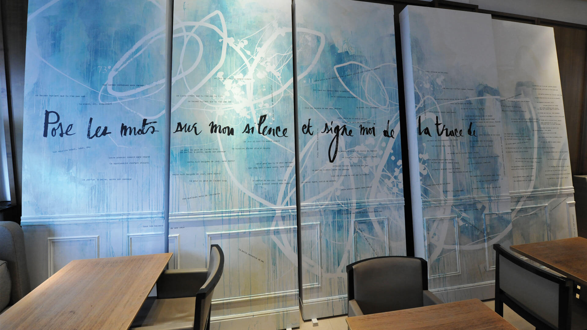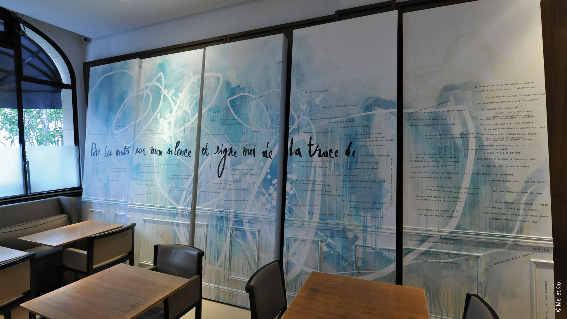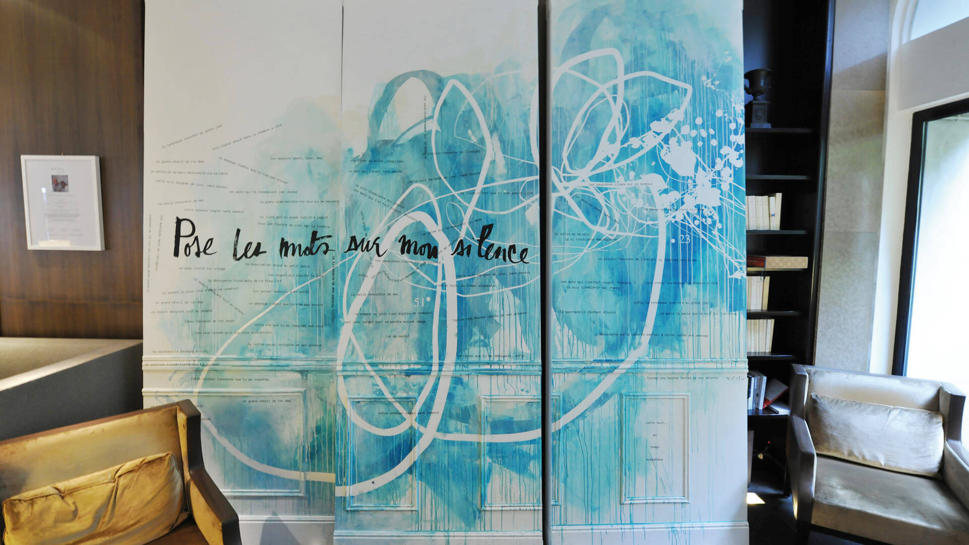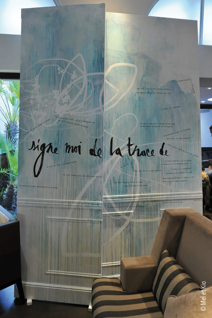 Mel et Kio transportent leurs murs haussmanniens dans l’Hôtel 5* Montalembert de Saint-Germain-des-Prés pour les Designer’s days – fectival du Design Grand Paris. Les murs révèlent par bribes les souvenirs d’intimité dont ils ont été témoins.