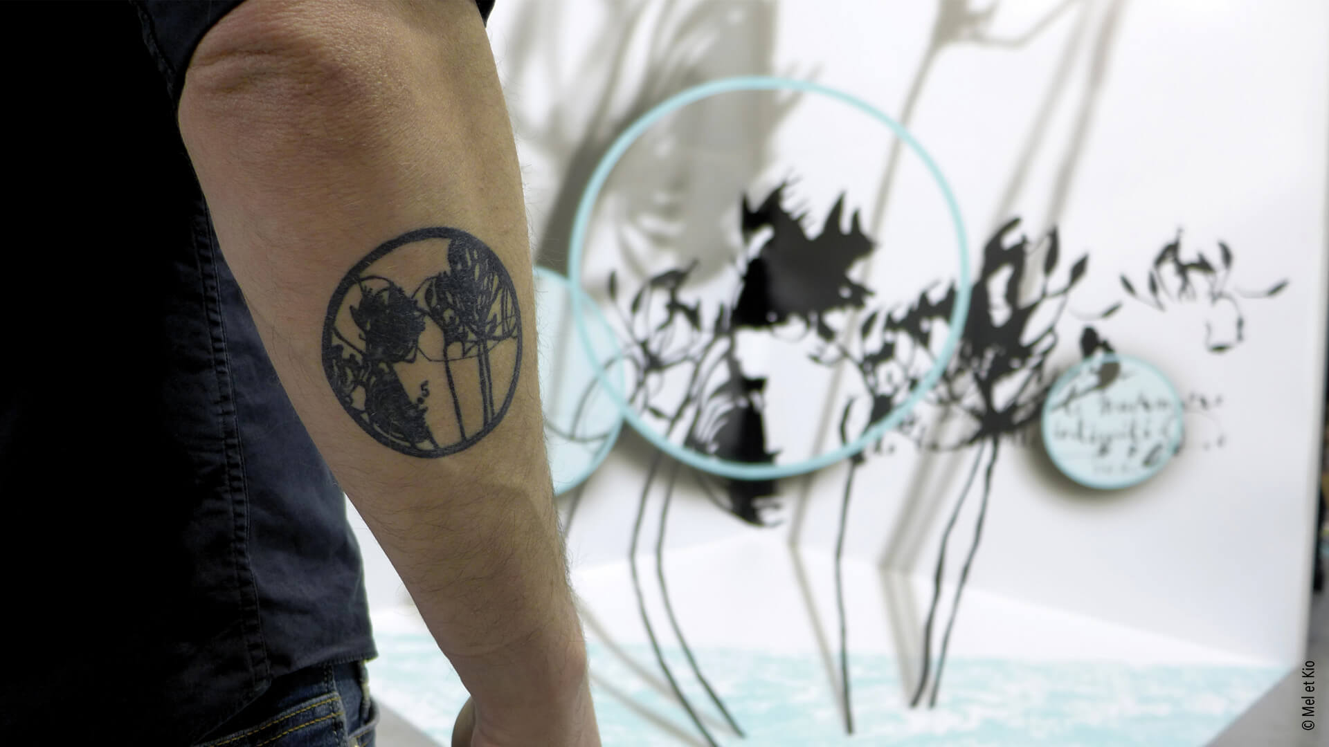 Anamorphose art mural dessin de végétaux avec ombres sur mur