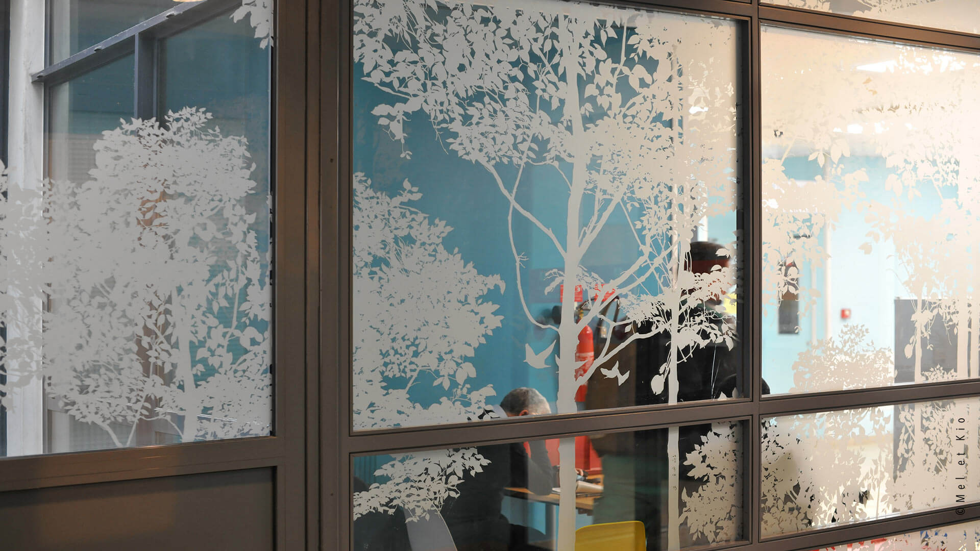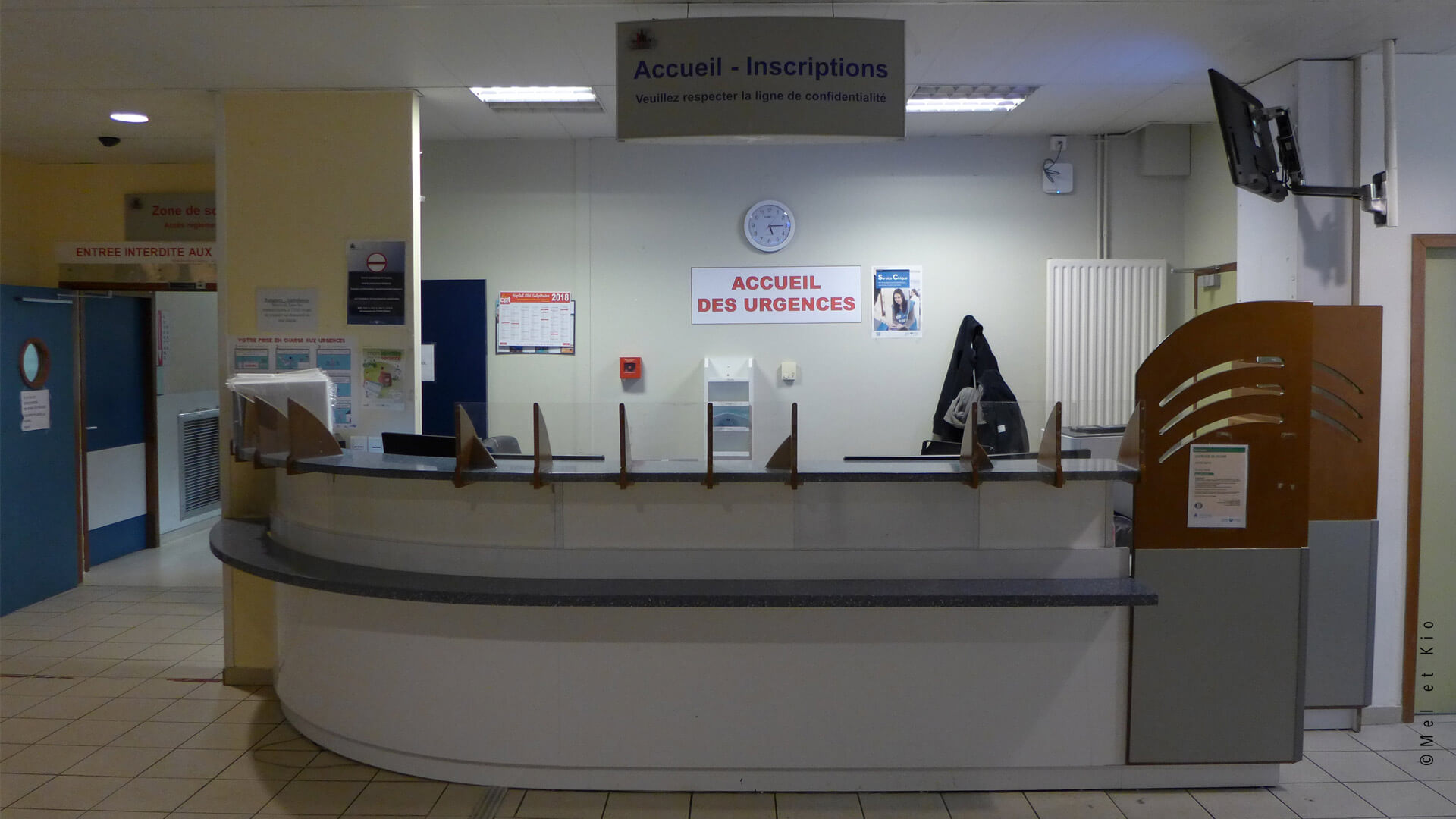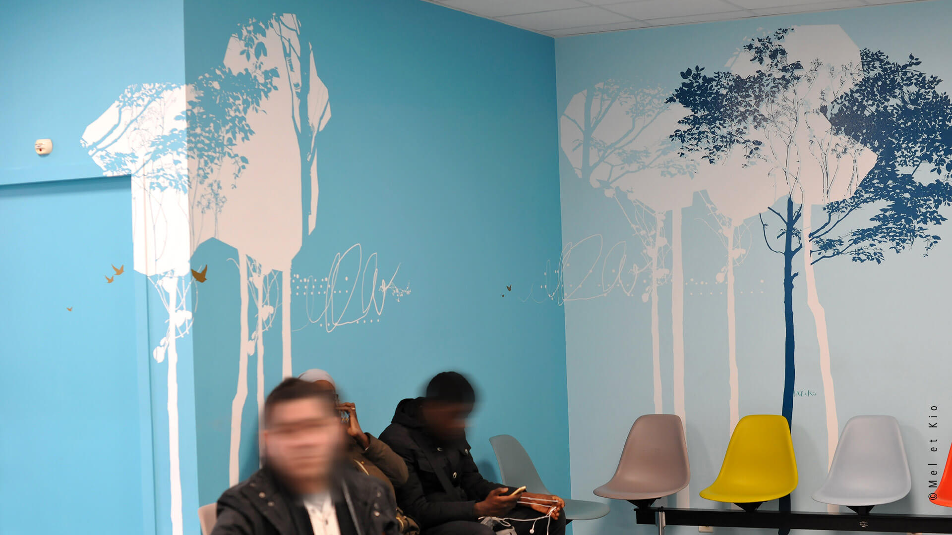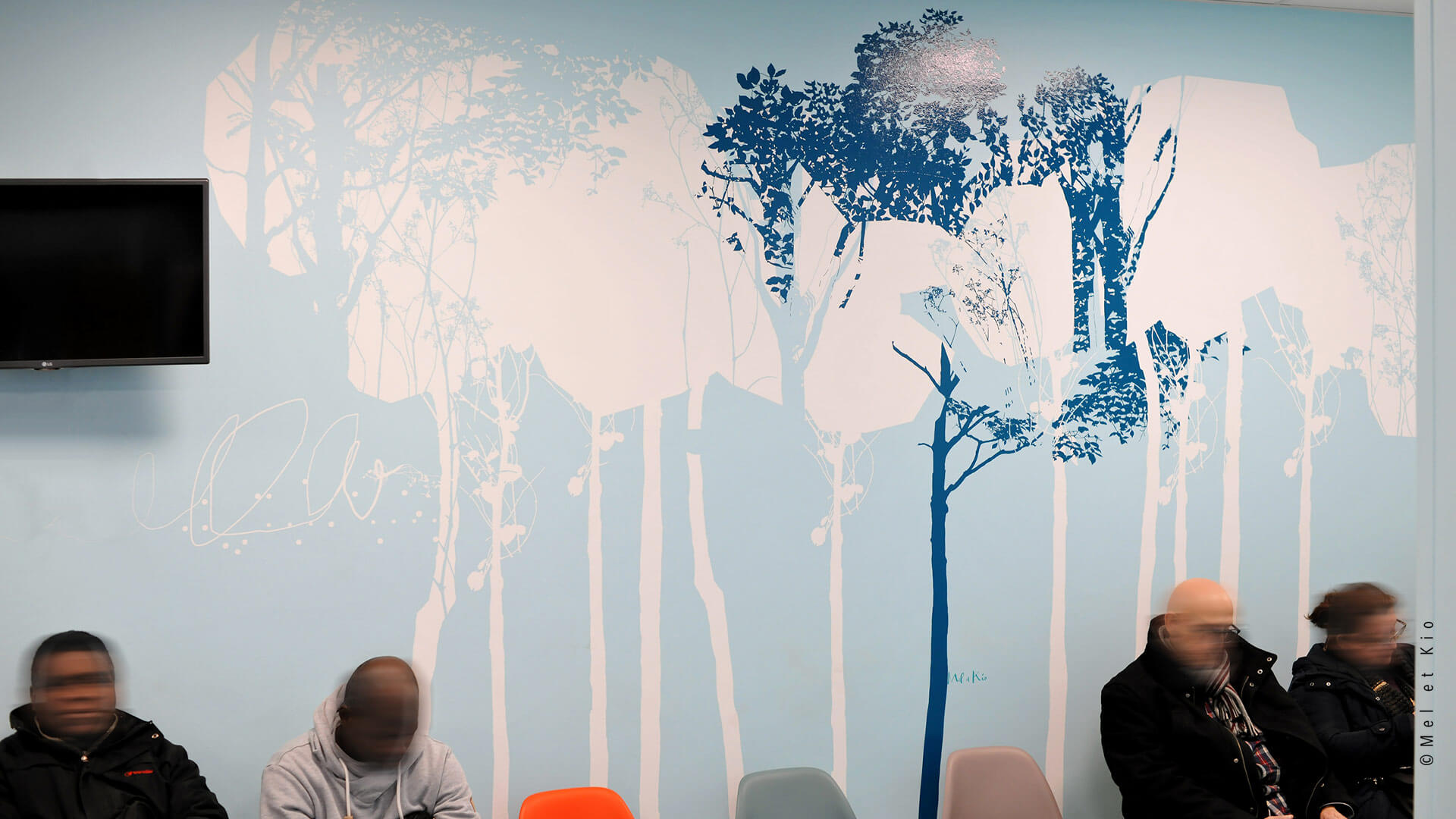 Décors muraux des urgences de l’hôpital de la Pitié Salpêtrière et habillage de la banque d’accueil