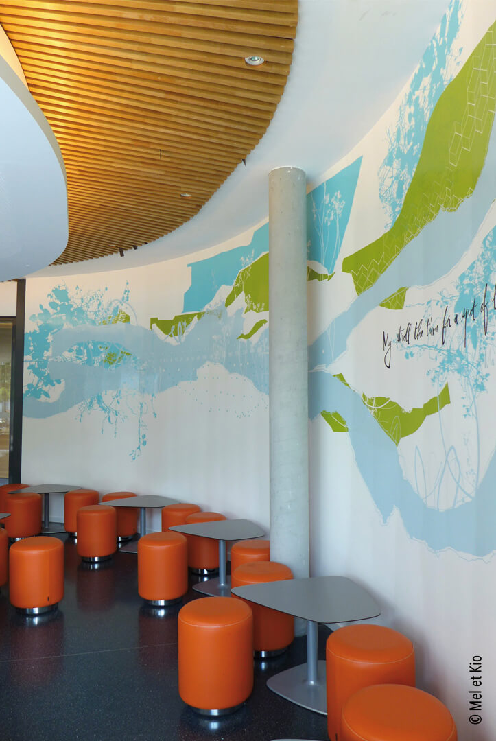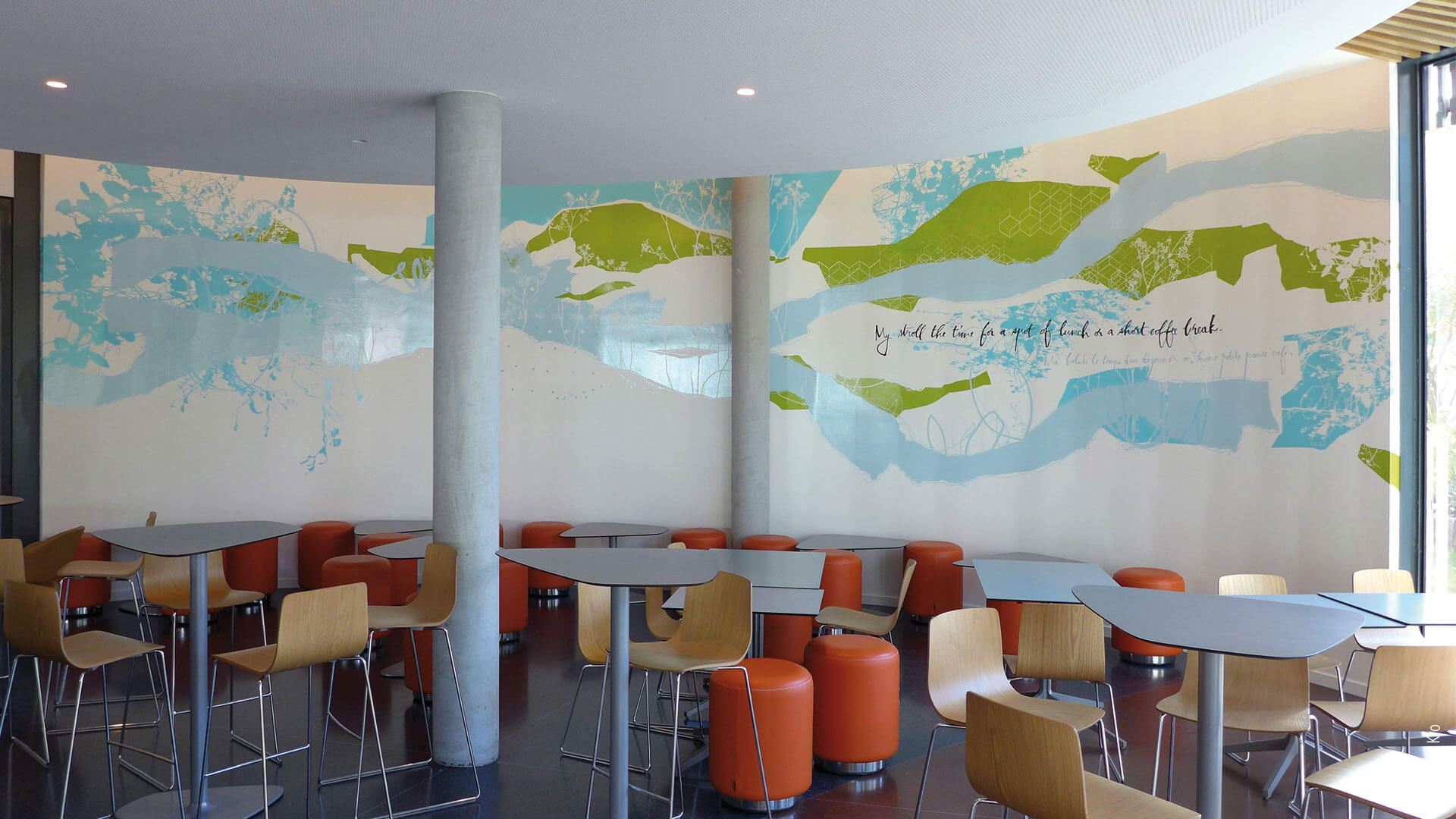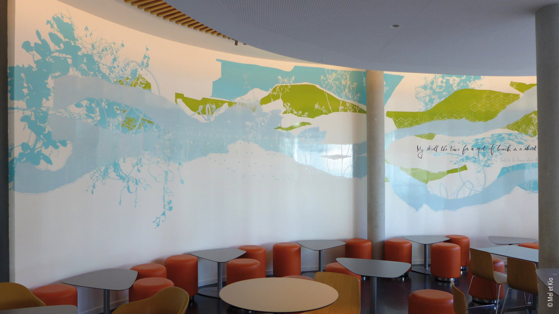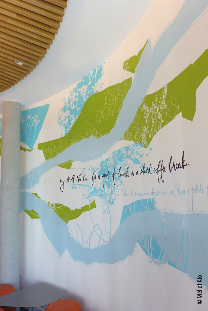 Art mural graphique et poétique pour l’espace de restauration de l’OCDE à Boulogne Billancourt
