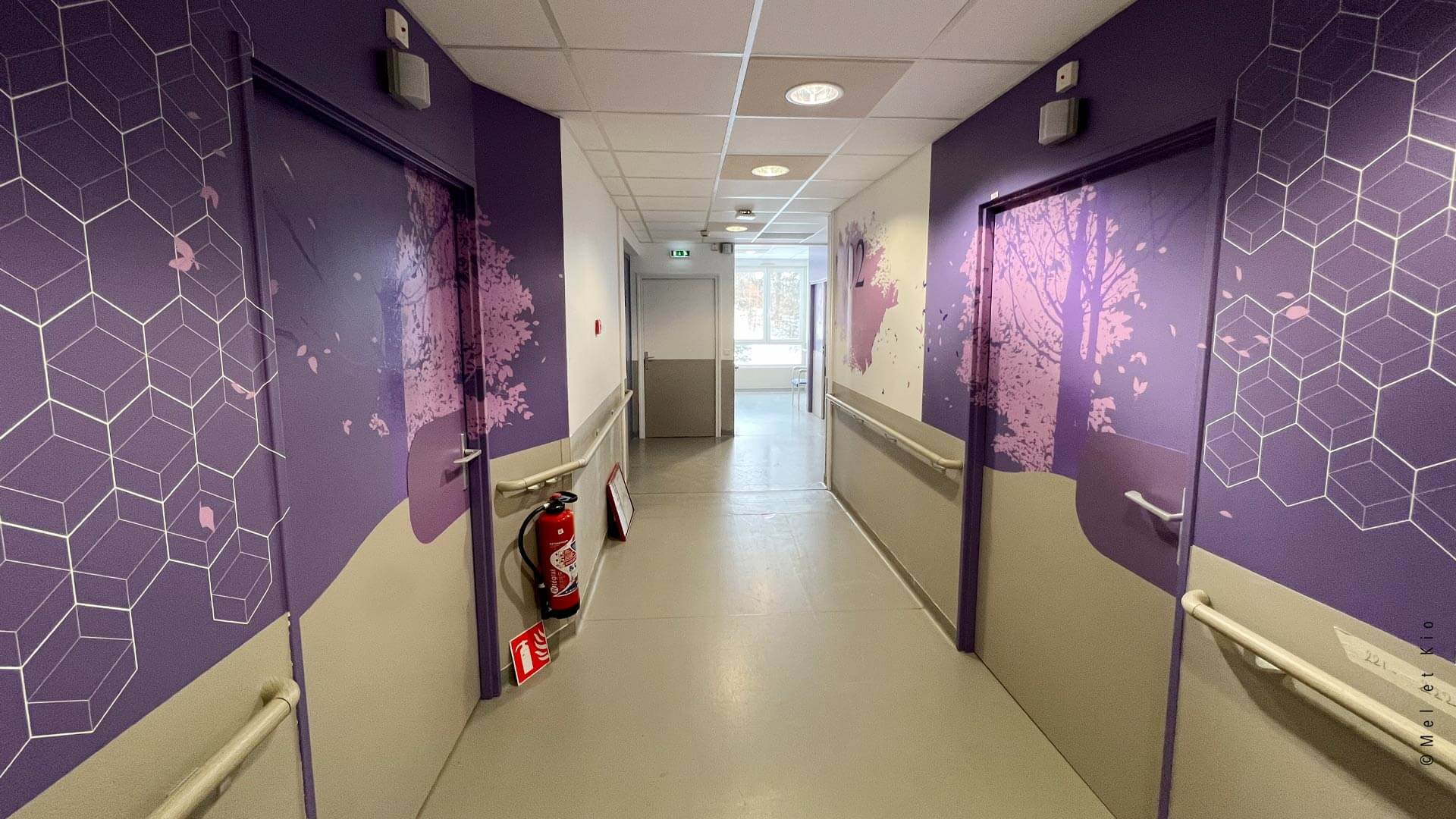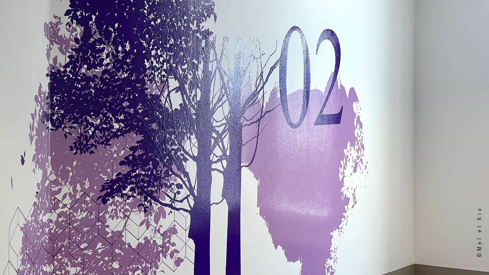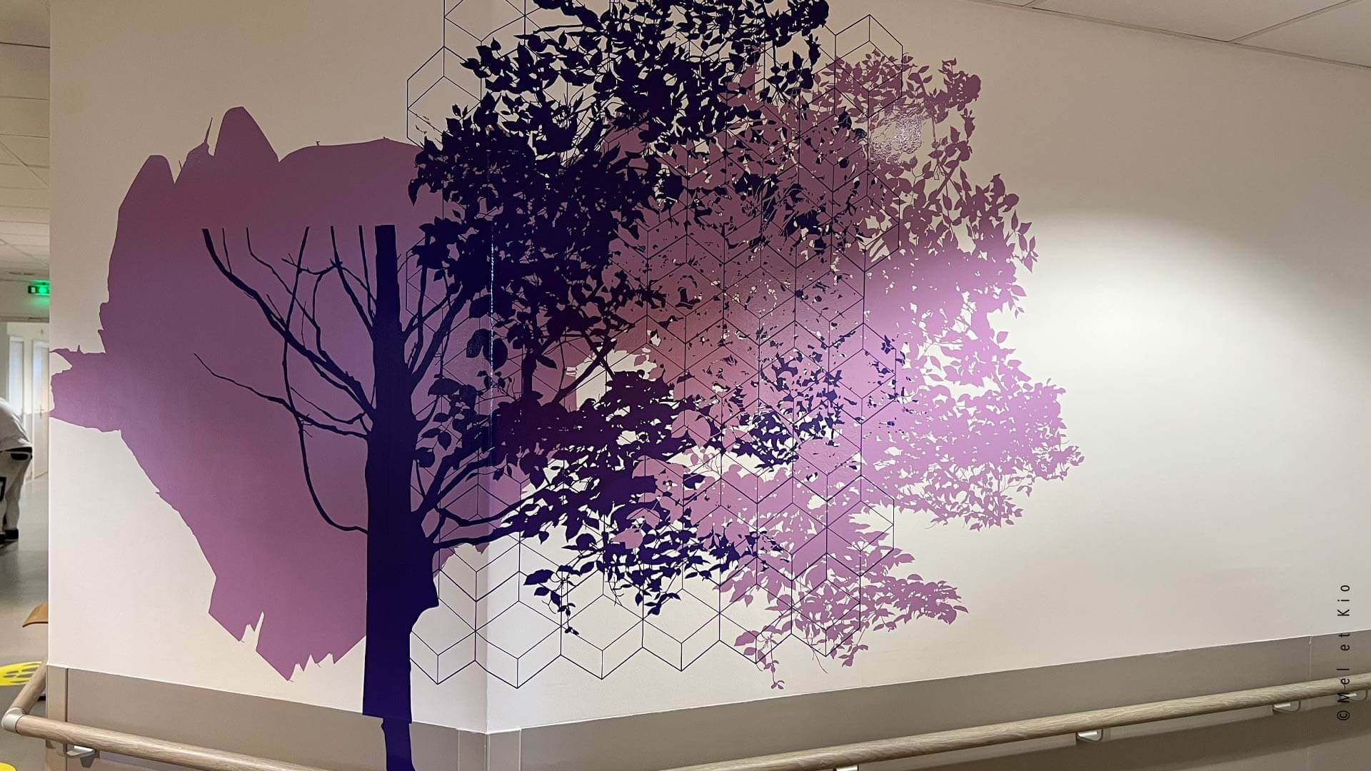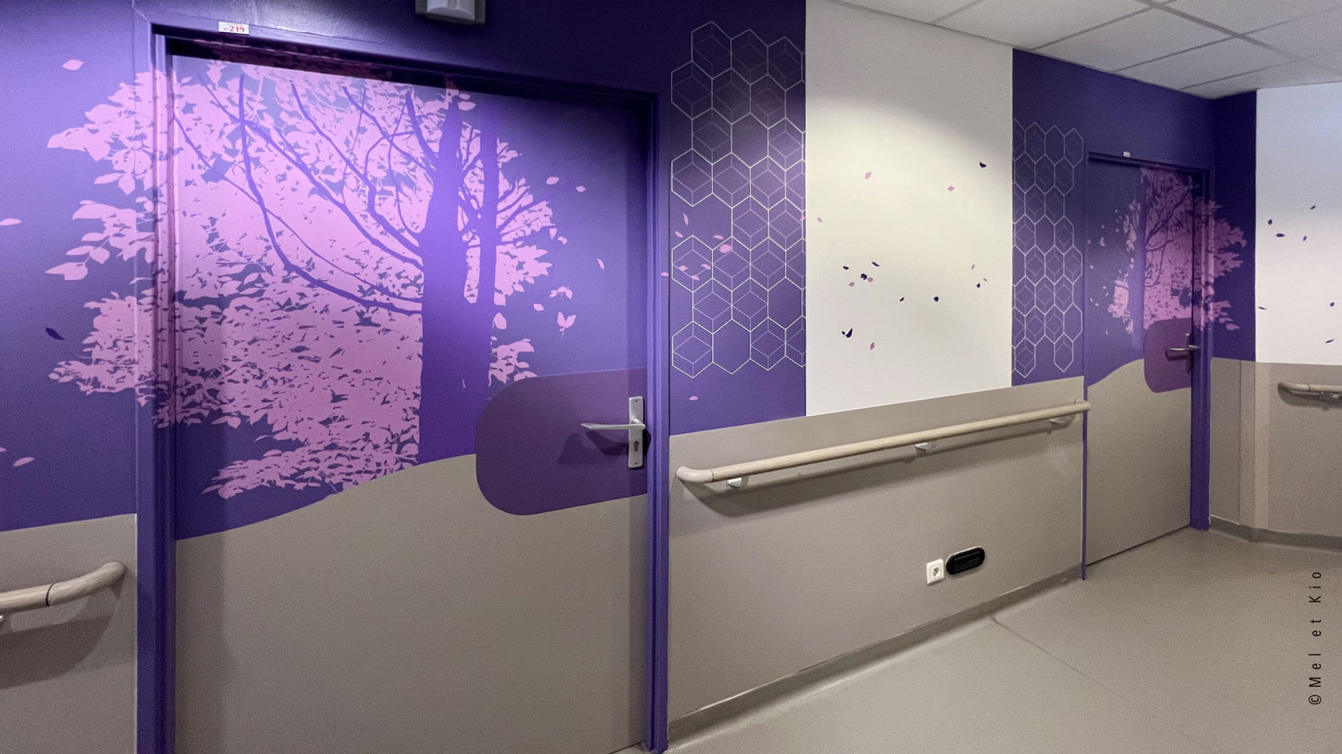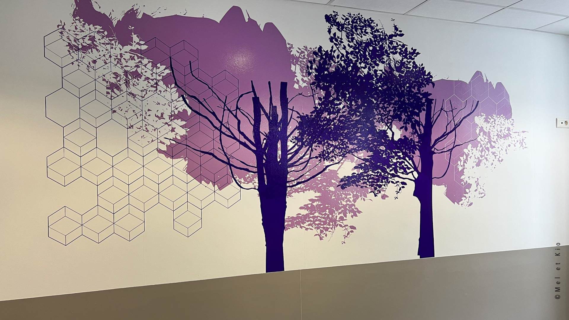 L’Orsac a commandé une scénographie murale au duo d’artistes Mel et Kio. La réhabilitation du bâtiment allait de paire avec une réflexion sur la lecture des services et l’identité murale. Les dessins sur murs et portes ré-enchantent l’espace. Les artistes wall art spécialistes de l’identité des lieux proposent des fresques originales qui permettent d’identifier les espaces en incluant la signalétique.