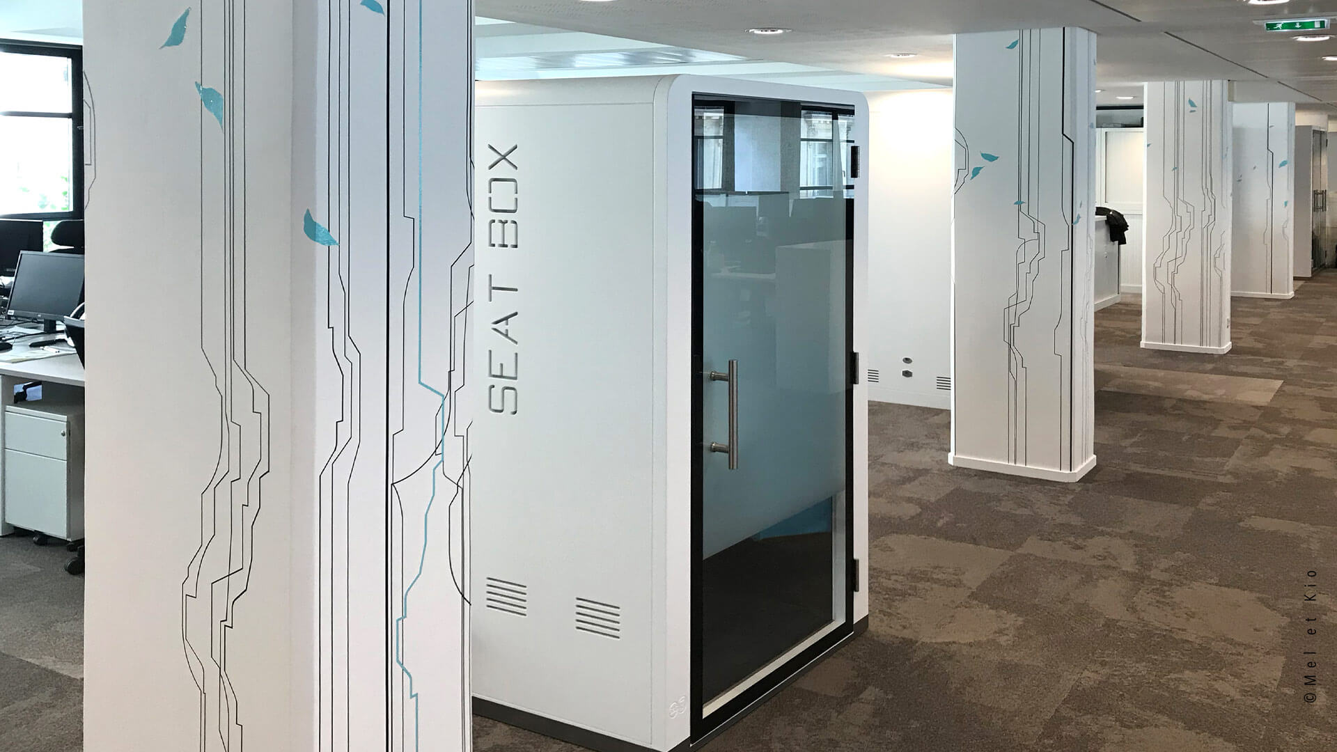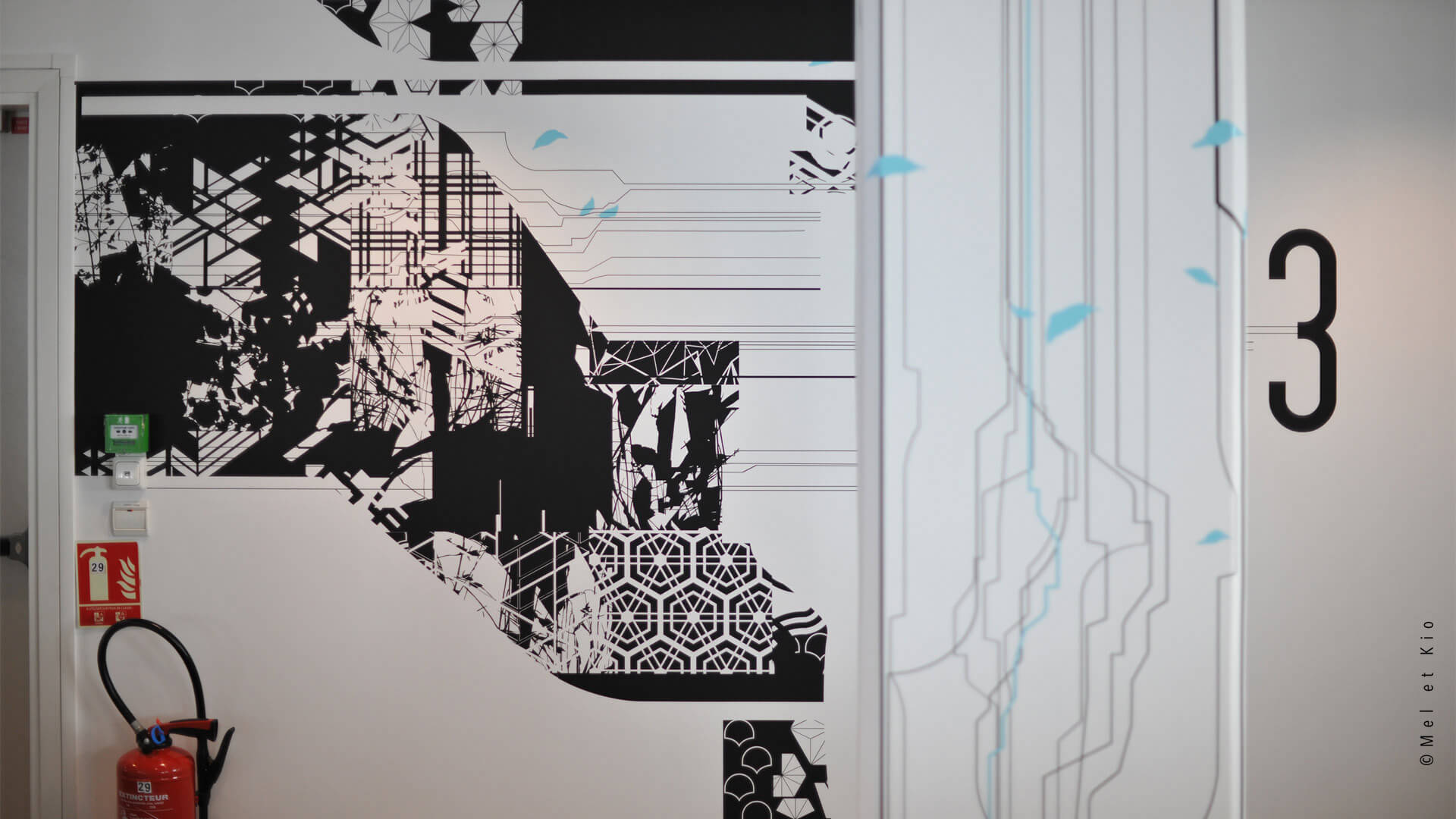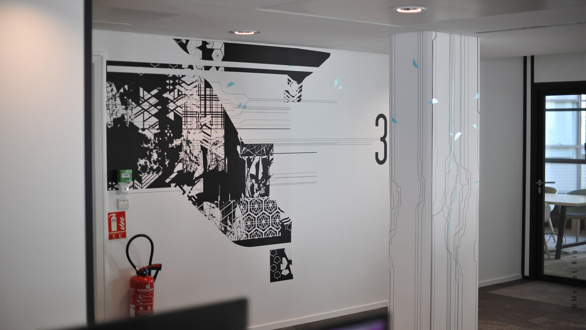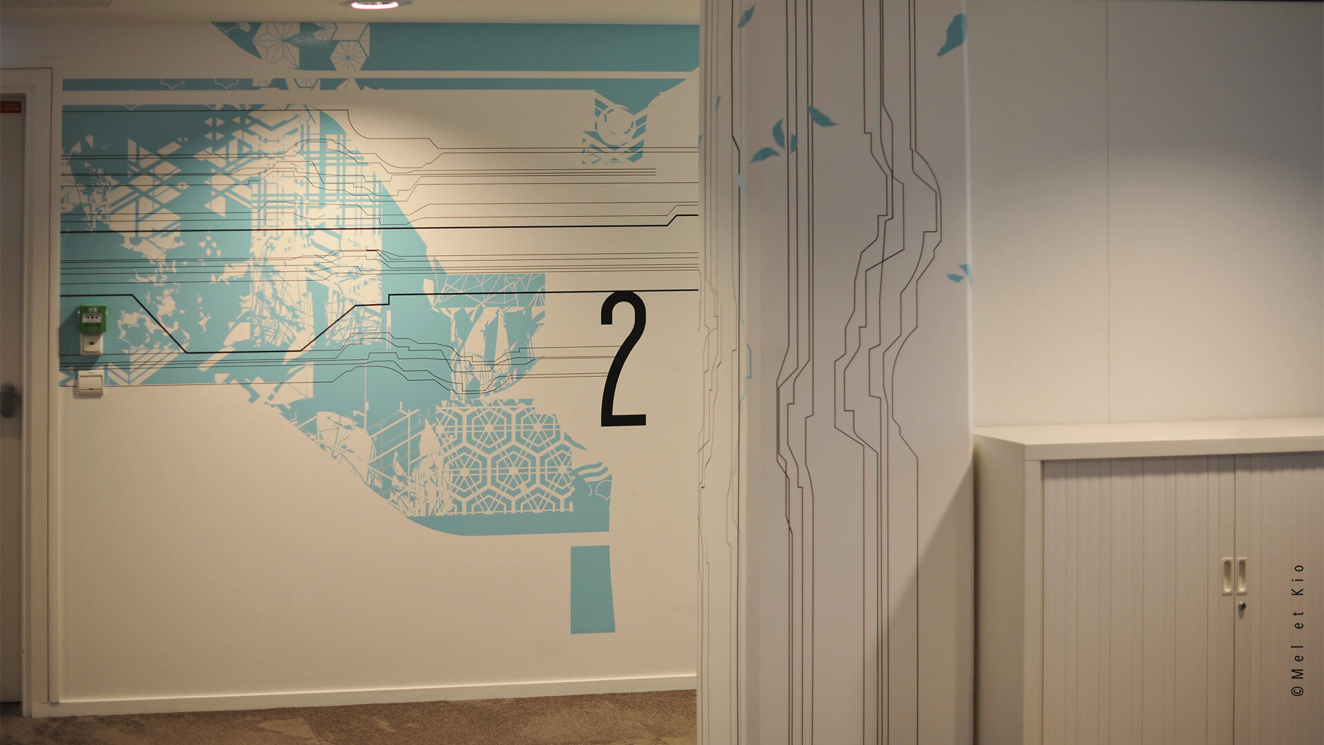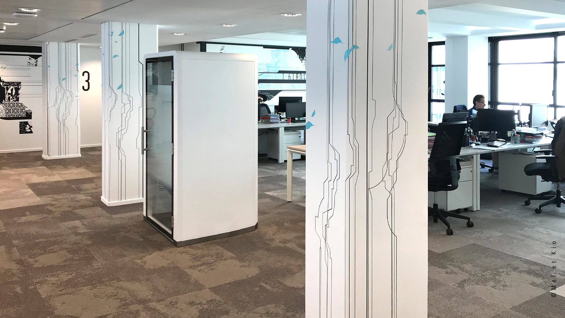 Signalétique originale et décoration murale bureaux siège Free - Mel et Kio