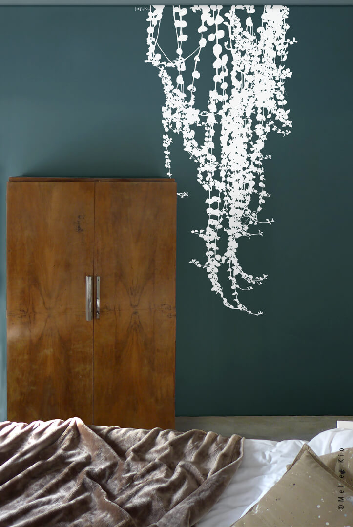 Ce décor adhésif mural au motif de végétation a été conçu pour une pose facilitée.