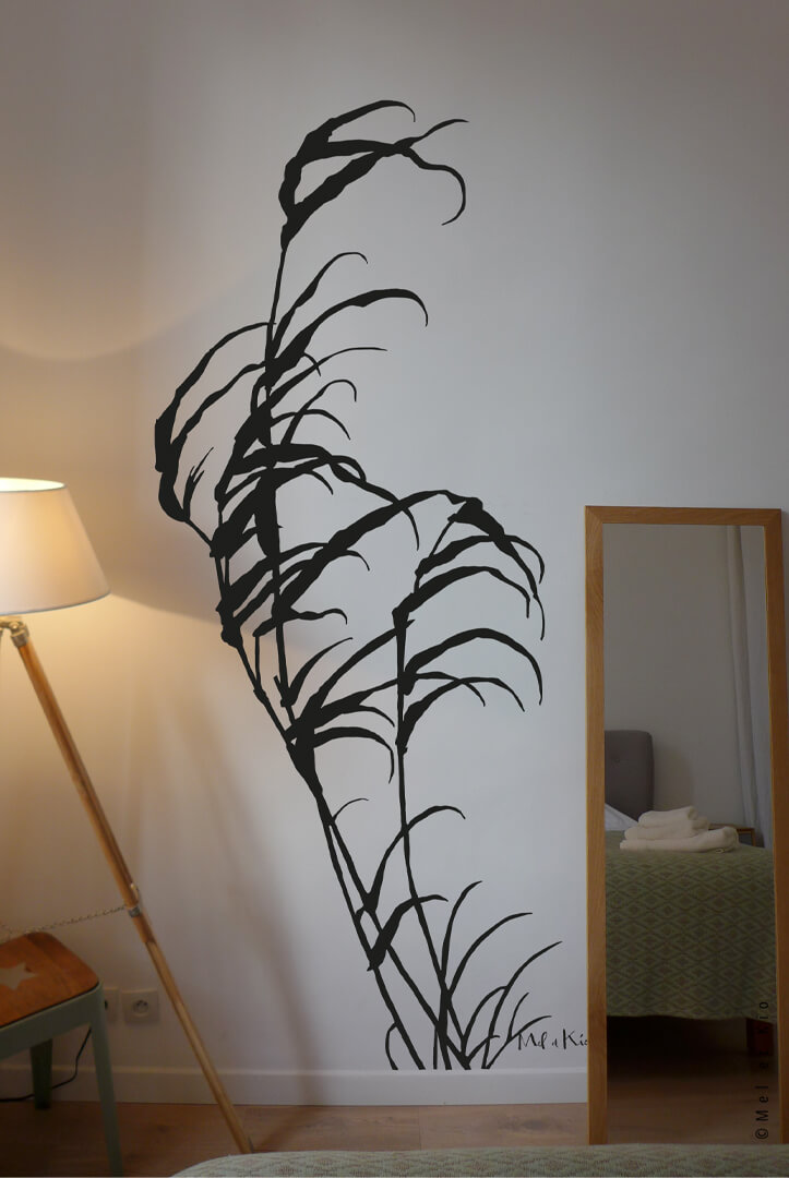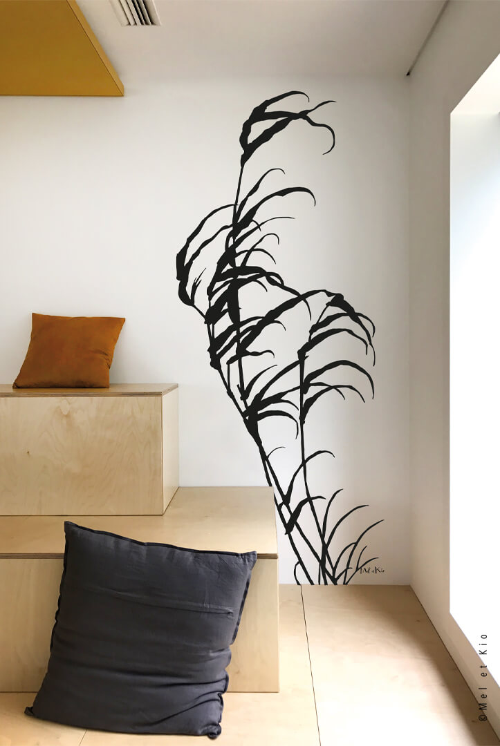 Ce décor adhésif mural au motif de végétation a été conçu pour une pose facilitée.