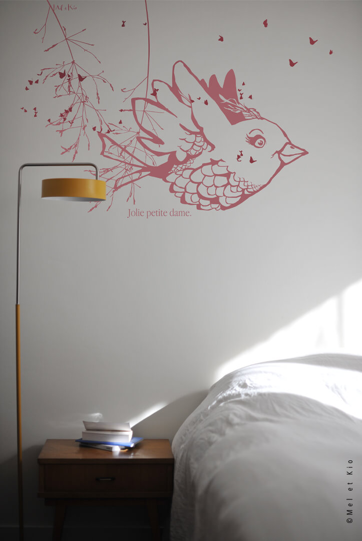 Tatouage mural collection Murmures® Jolie petite dame - Mel et Kio - Sticker original oiseau