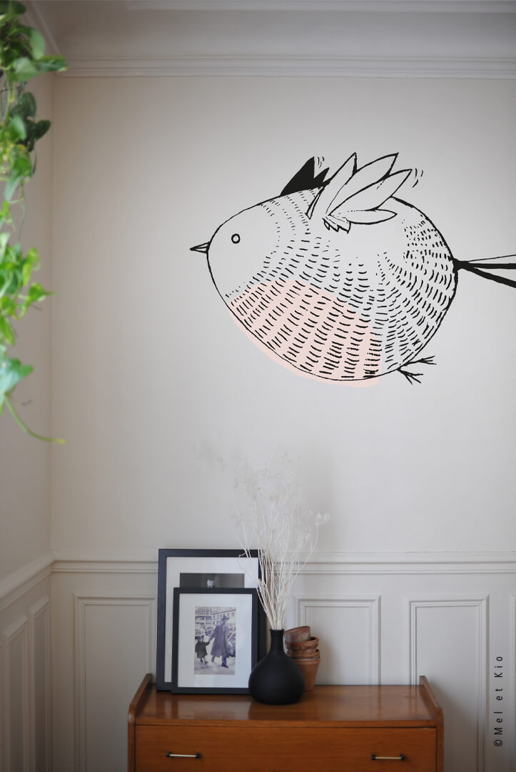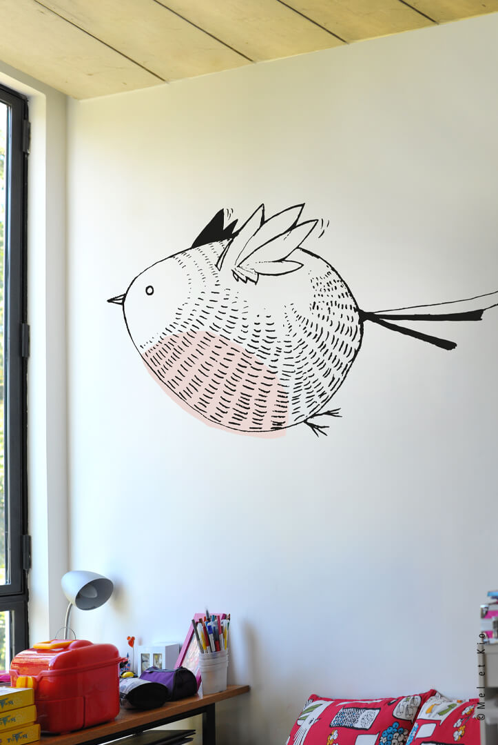 Le sticker oiseau « L’enjouée » de la collection Murmures® est fabriqué en France, dans l’atelier des artistes.