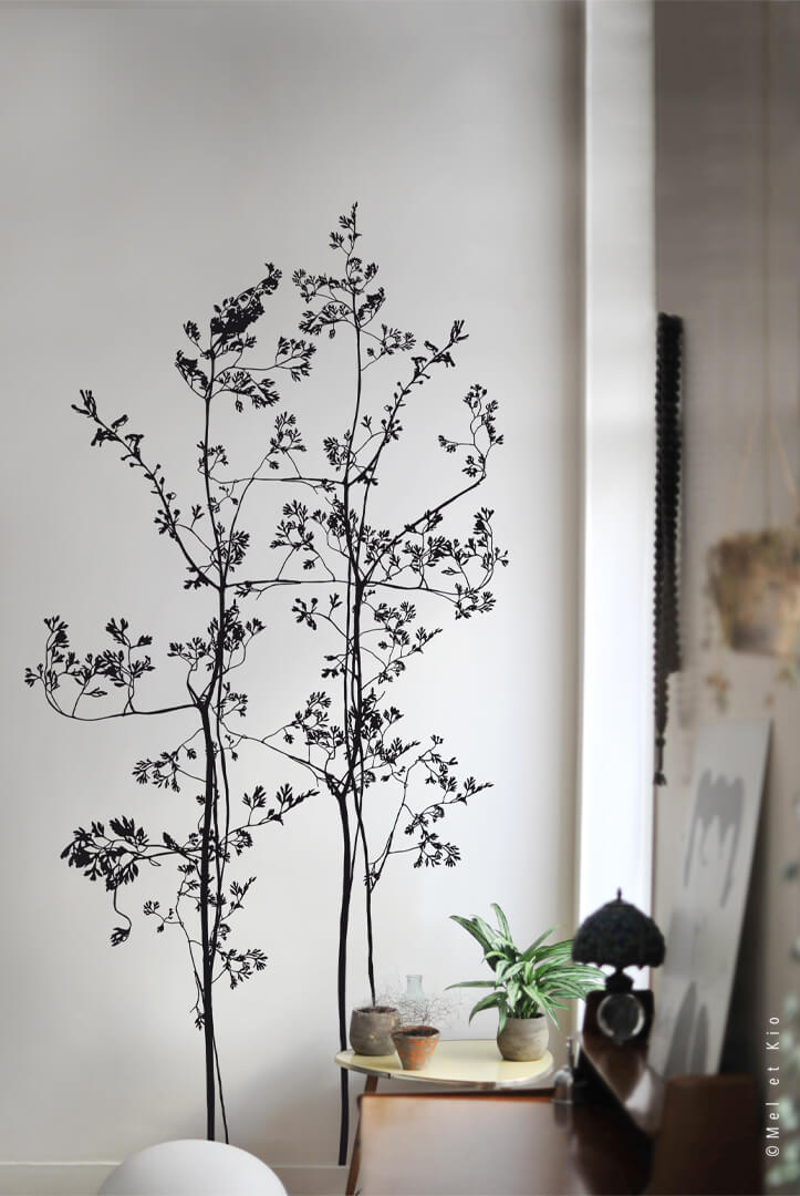 Ce décor adhésif mural au motif de végétation a été conçu pour une pose facilitée.