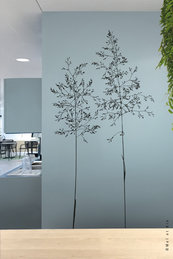 Ce décor adhésif mural au motif de végétation a été conçu pour une pose facilitée.