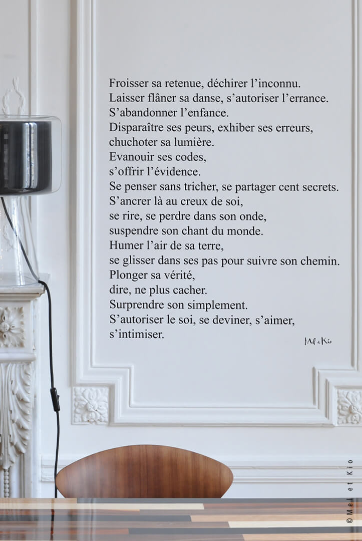 Ce décor adhésif mural au texte poétique original a été conçu pour une pose facilitée.