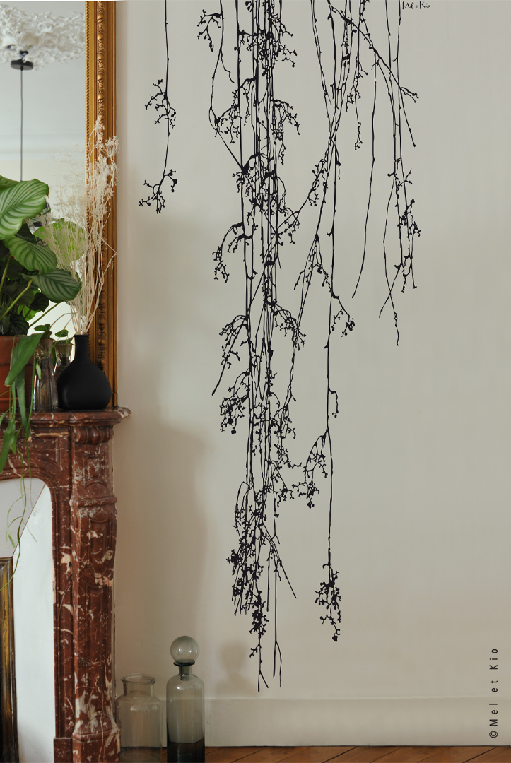 Ce décor adhésif mural au motif de végétation a été conçu pour une pose facilitée.