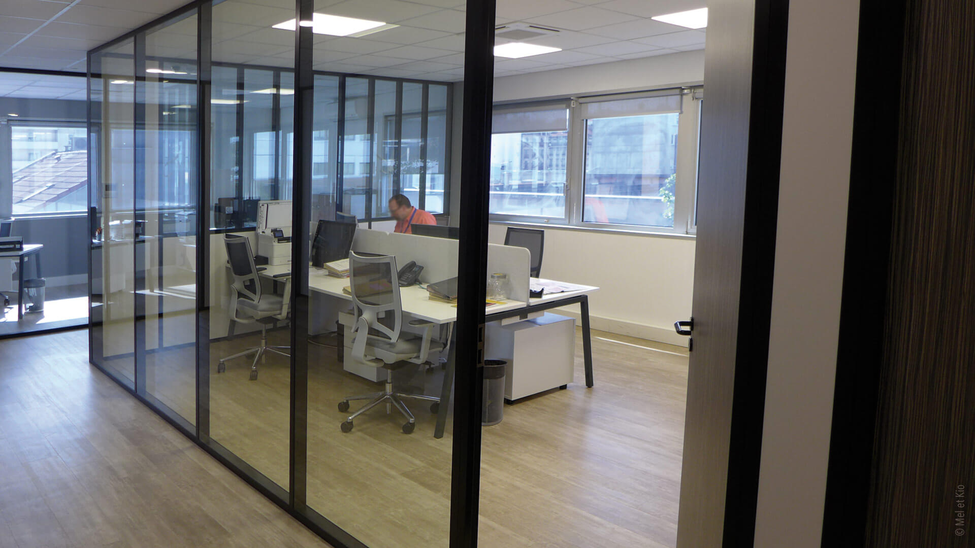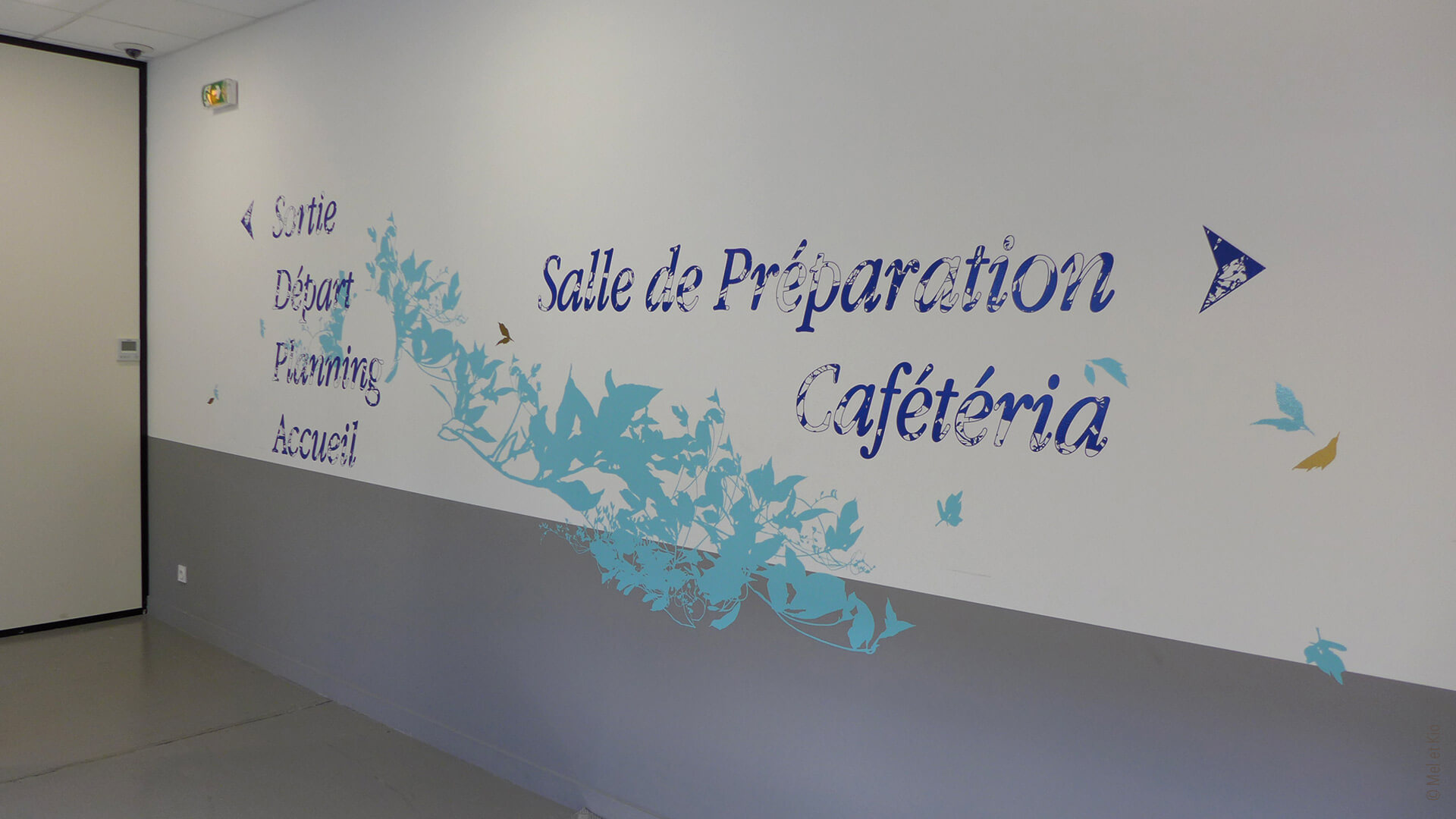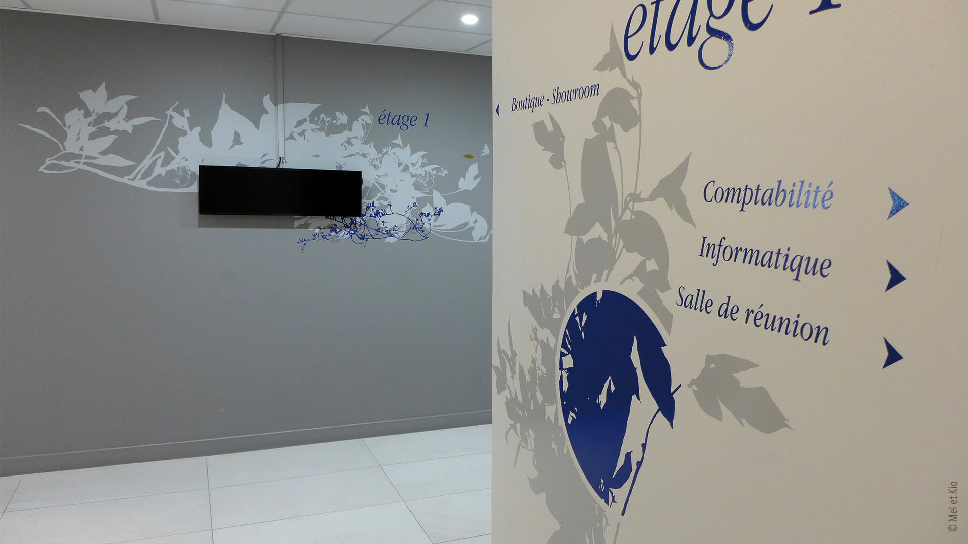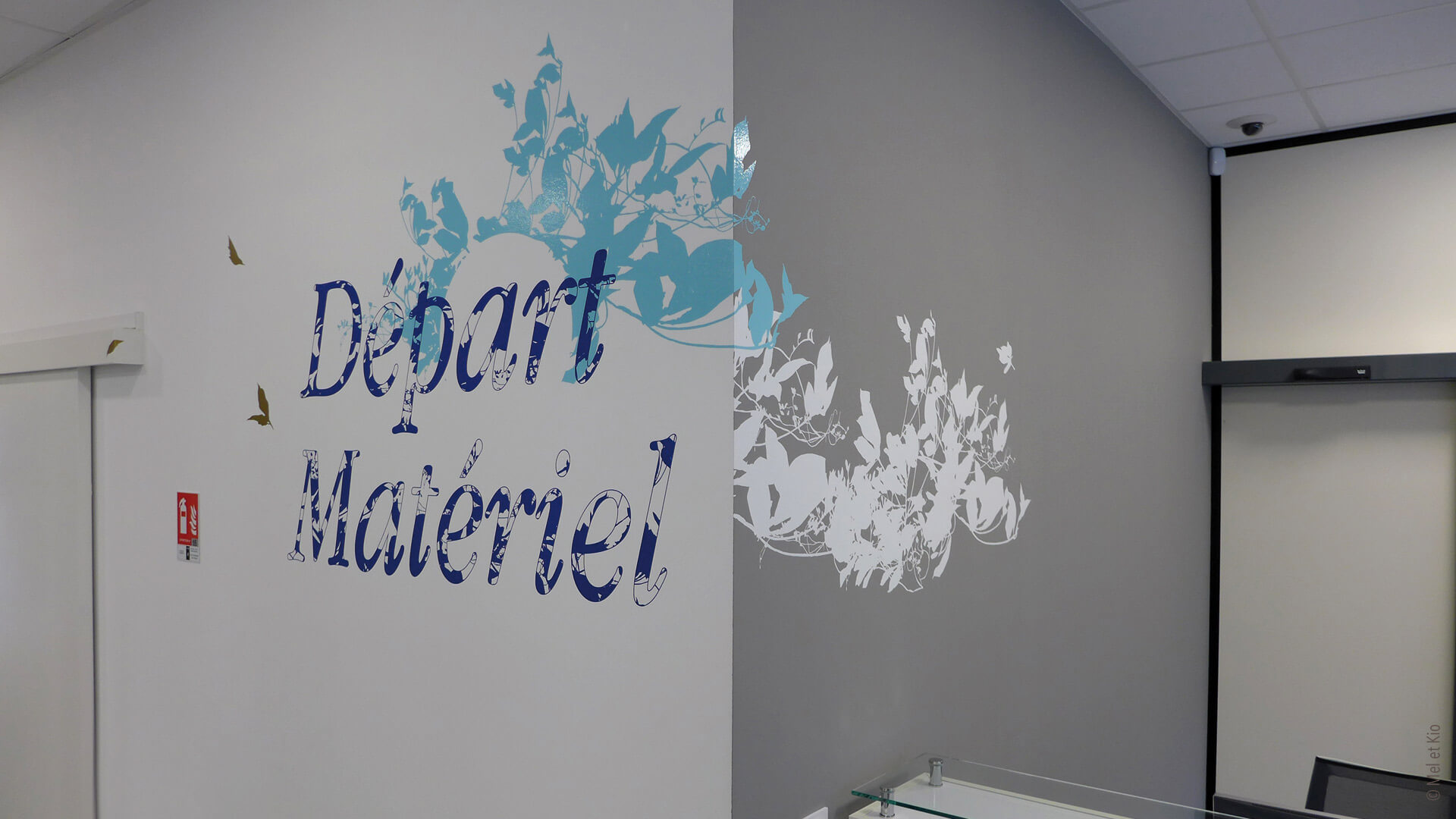 Décoration murale et vitrophanie végétale des cloisons vitrées des bureaux et circulation