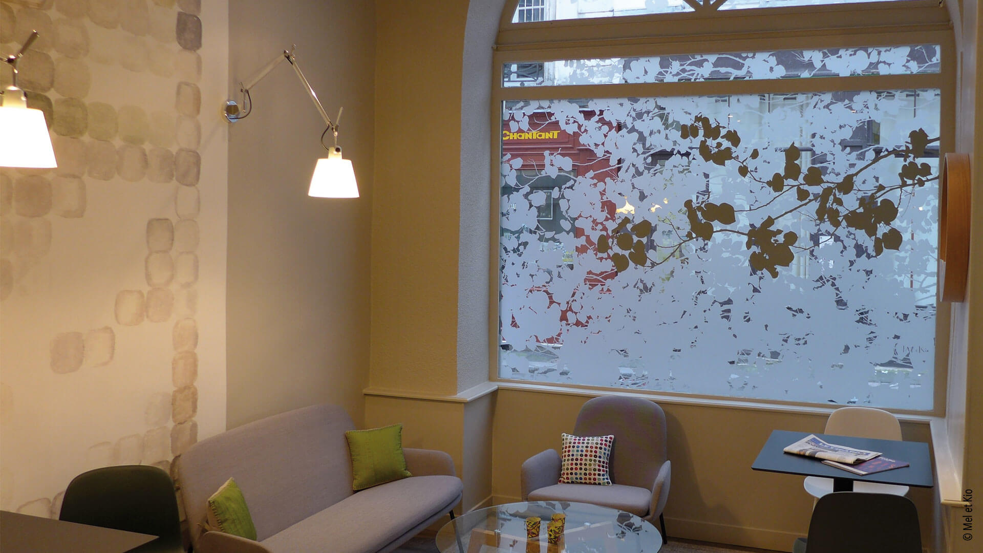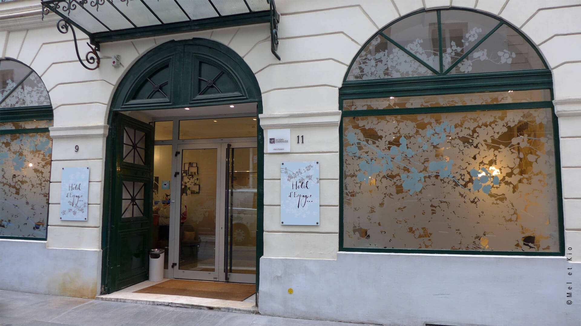 Décoration murale, vitrophanie et signalétique décorative pour l’hôtel d’Espagne à Paris