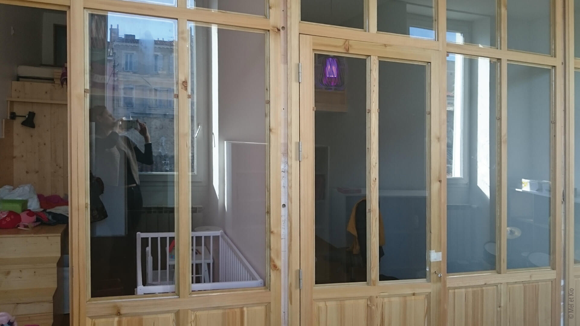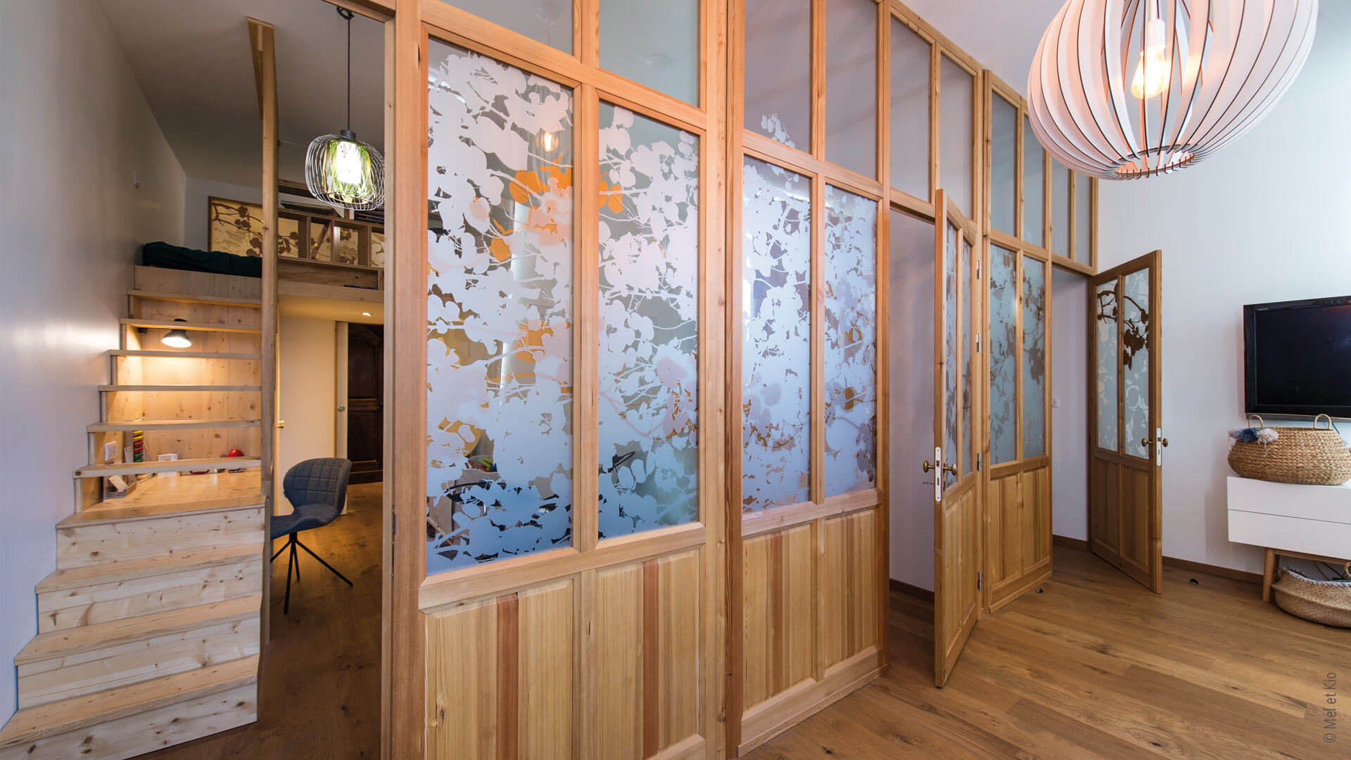 Vitrophanie sur cloisons vitrées d’intérieur et fenêtres atelier