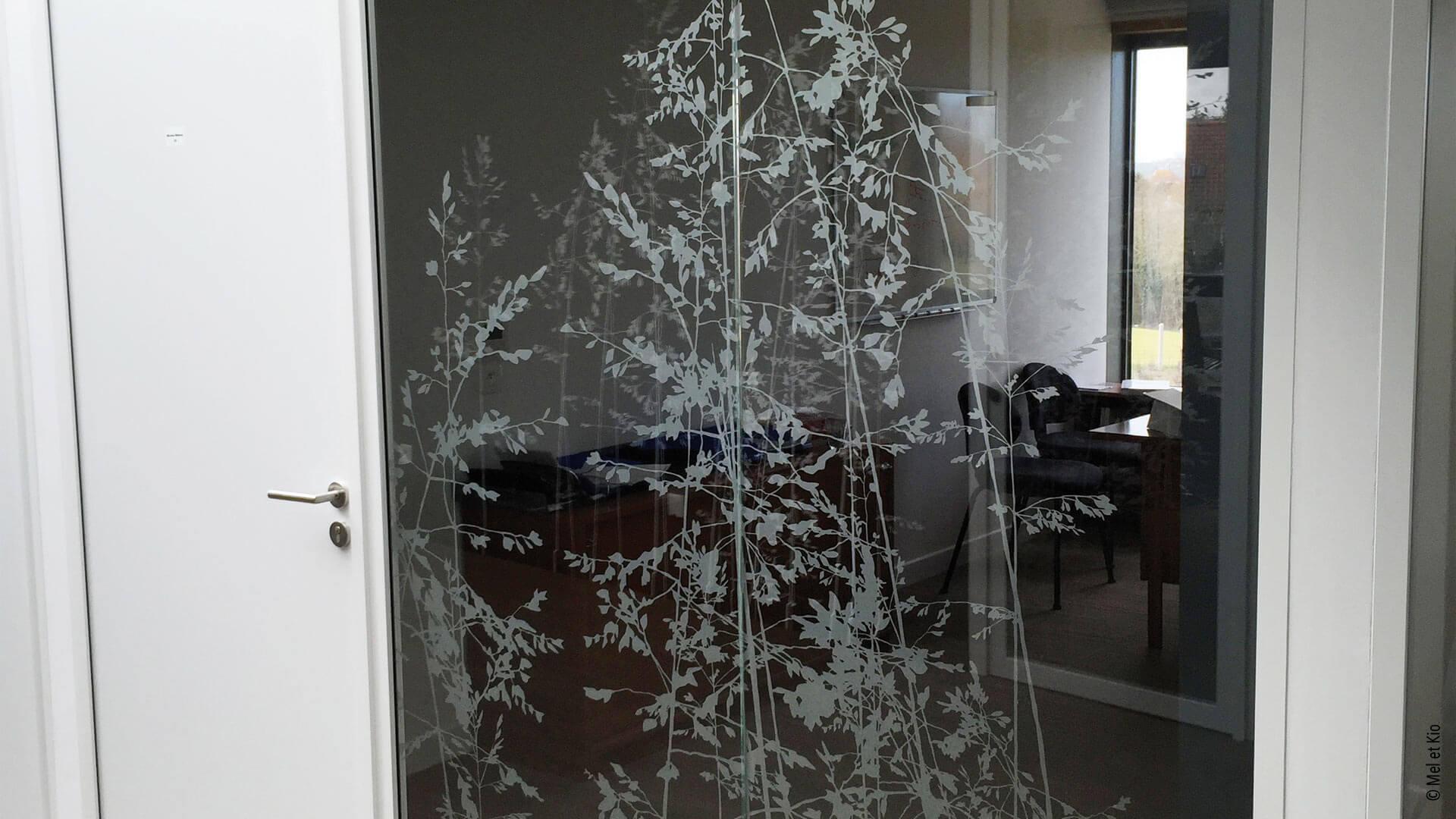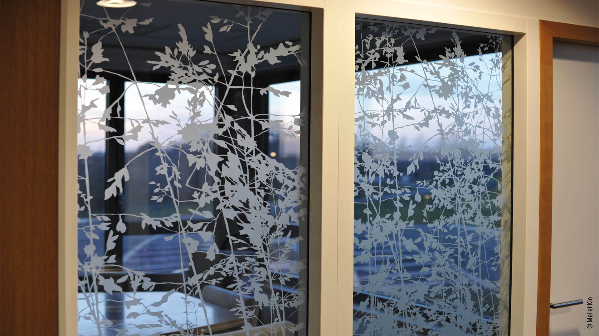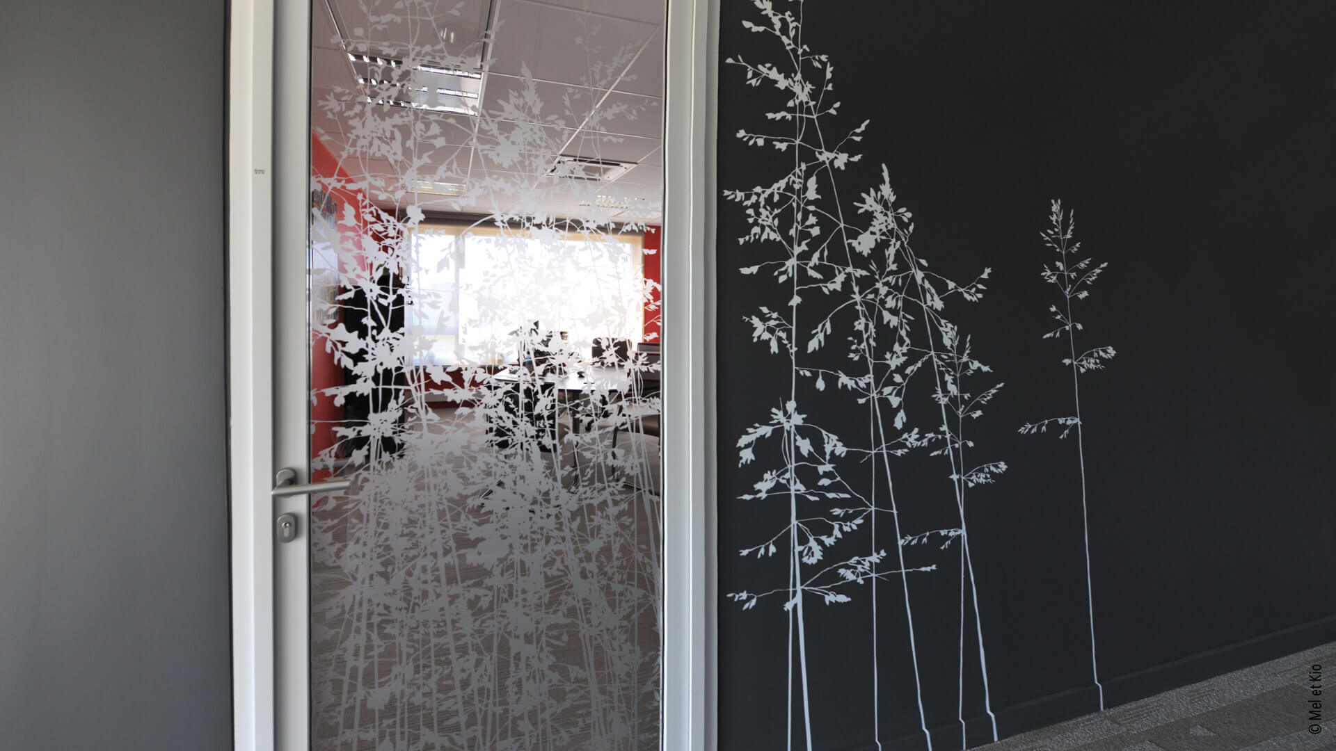 Vitrophanie sur cloisons vitrées de bureaux du siège social groupe C.B.