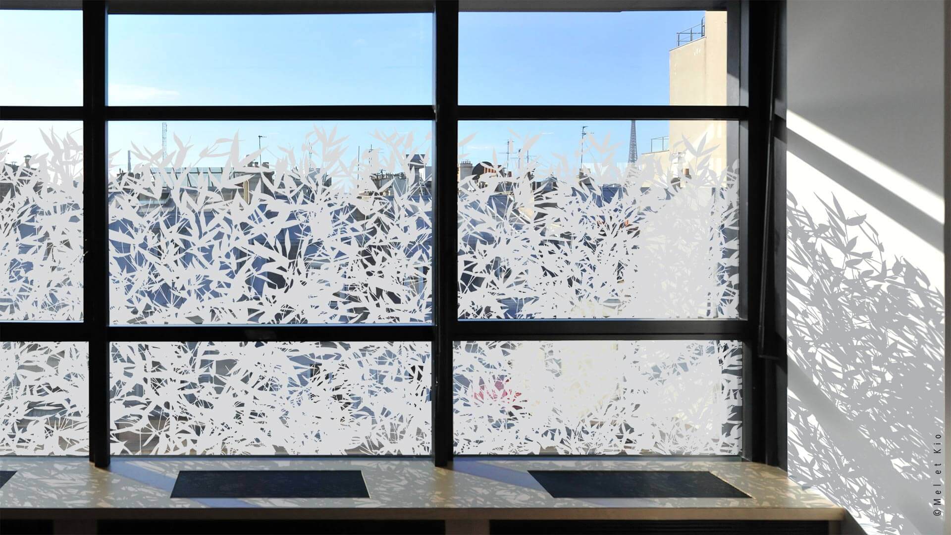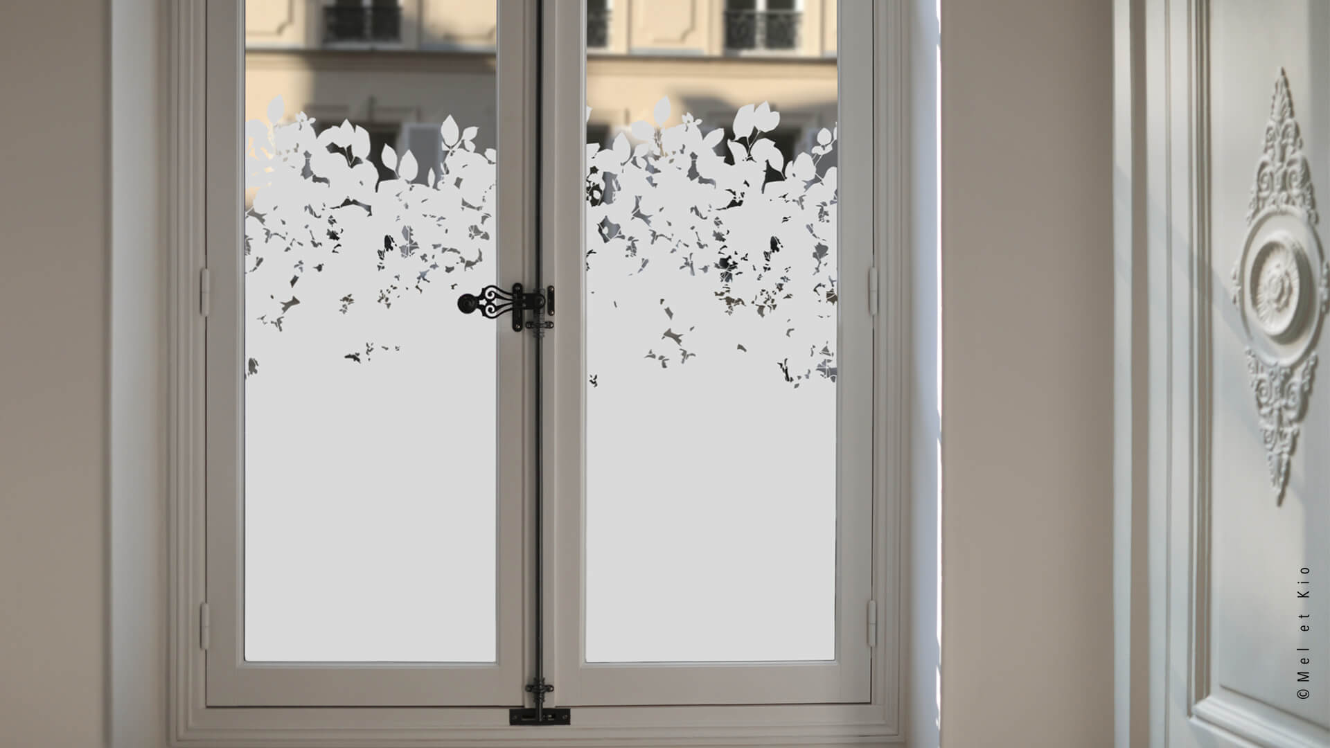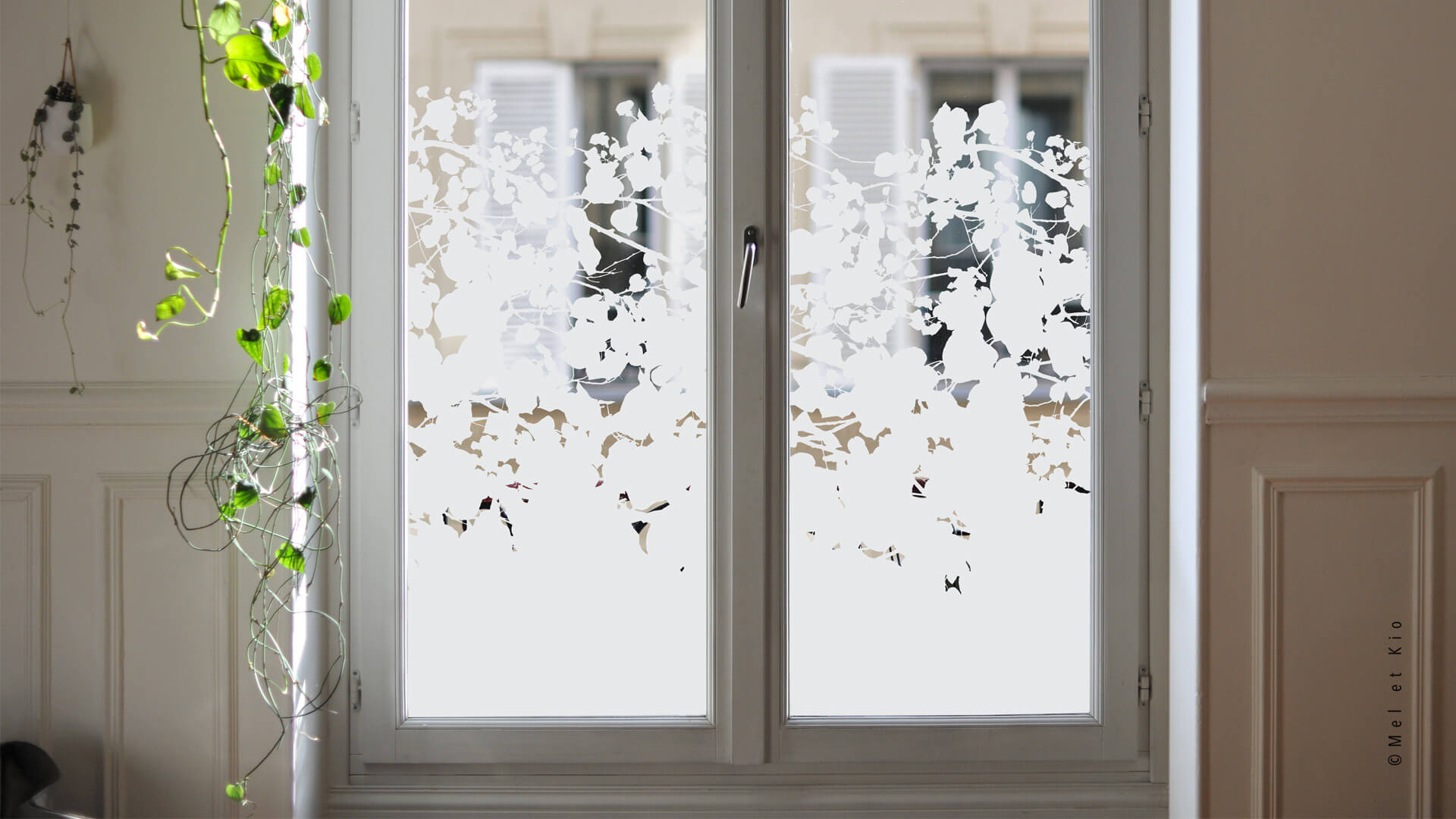 Le film occultant fenêtre devient un véritable outil d’expression. Découvrez la collection en série de vitrophanies créatives signées Mel et Kio. Vitrophanie au design végétal, graphique et géométrique à appliquer soi-même sur les vitres. Le collage des stickers de vitres est facilité par une pose à sec. Ce dépoli stickers de vitres est la solution pour cacher les fenêtres de la vue tout en conservant la luminosité.