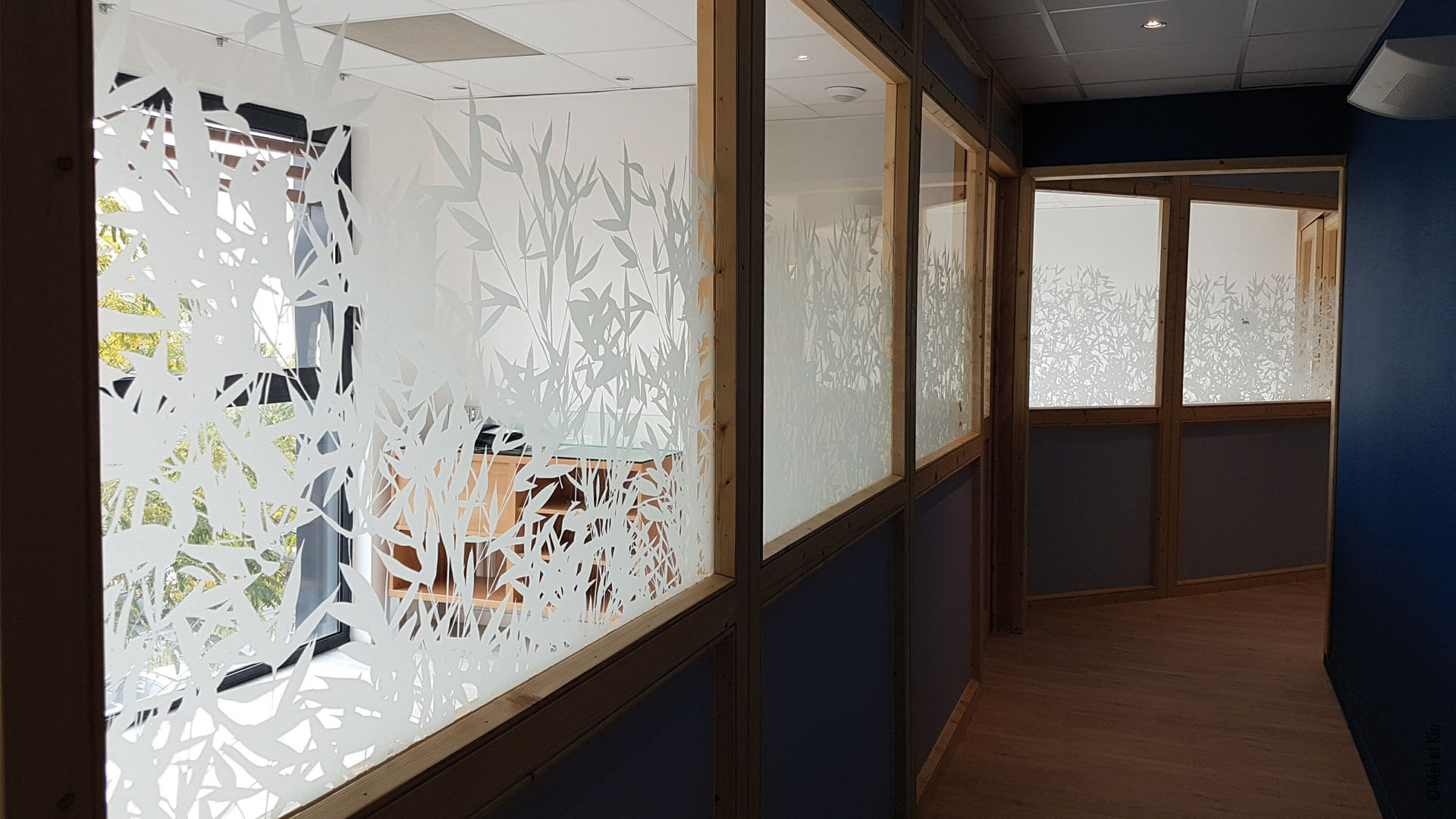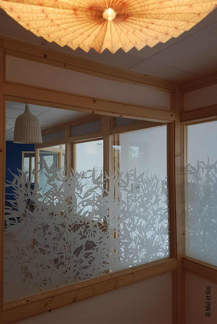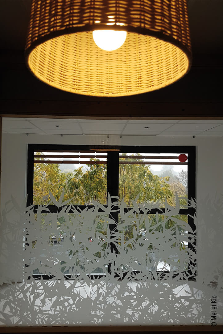 Vitrophanie au design original de Bambou entièrement réalisé à la main. Film occultant fenêtres pour un cabinet médical à Rouen
