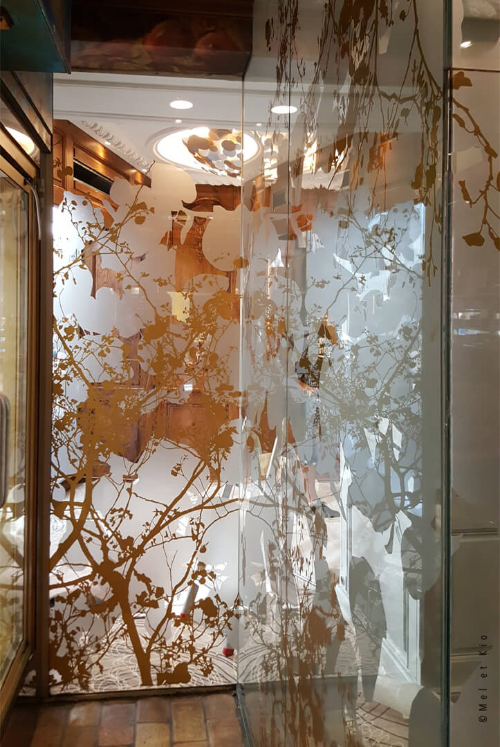 Adhésif monochrome or et adhésif dépoli sur vitres