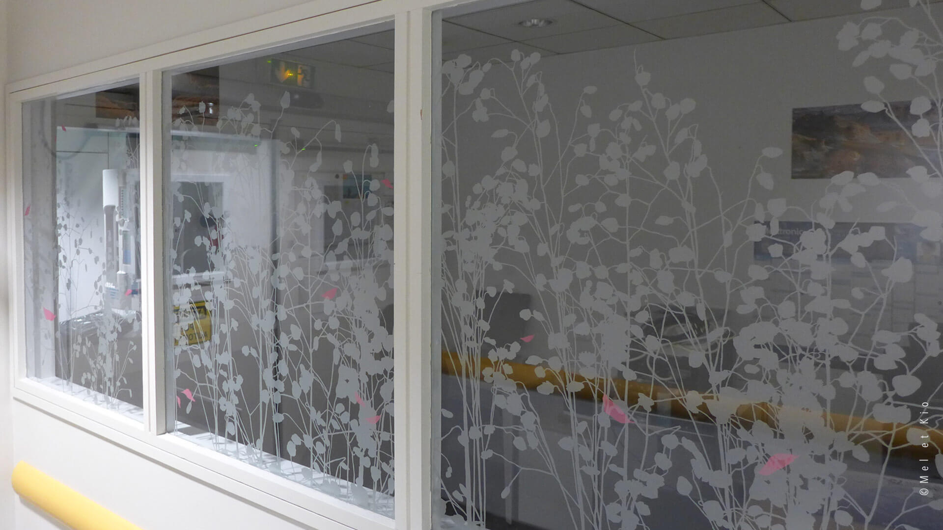Vitrophanie de végétaux pour l’Hôpital Pitié Salpêtrière APHP - Mel et Kio