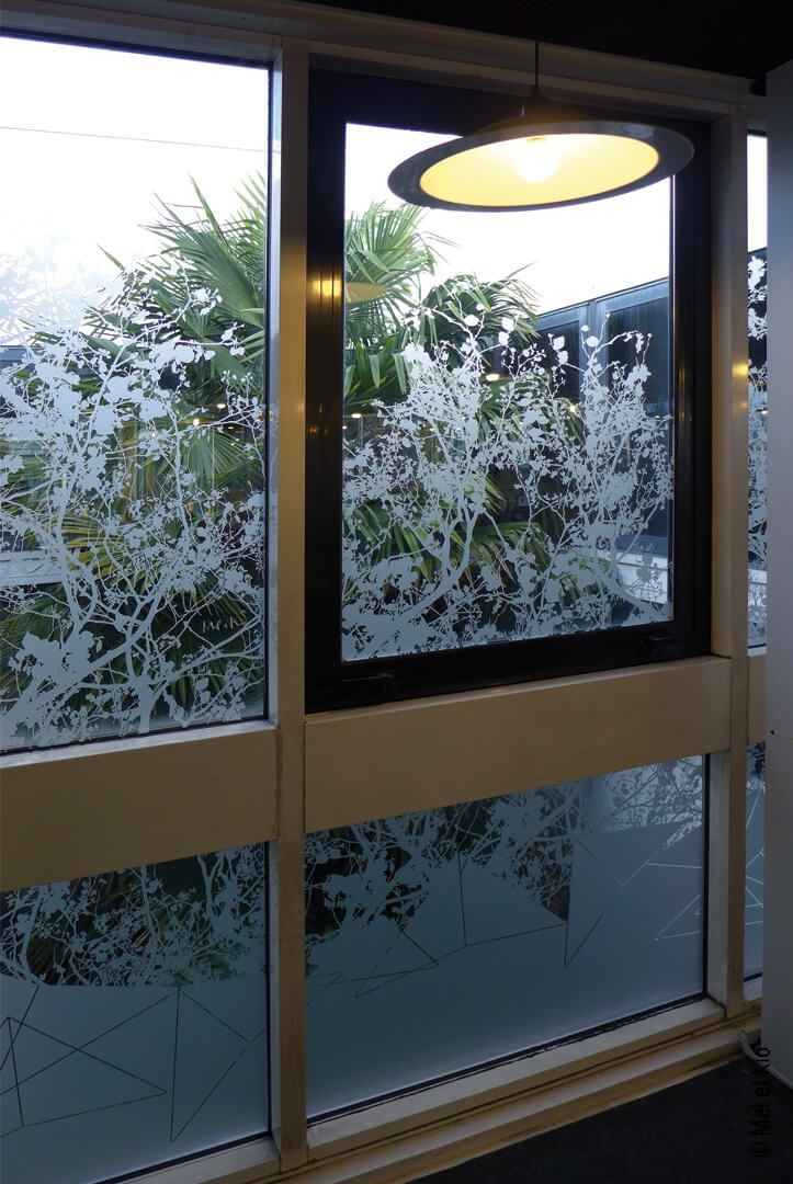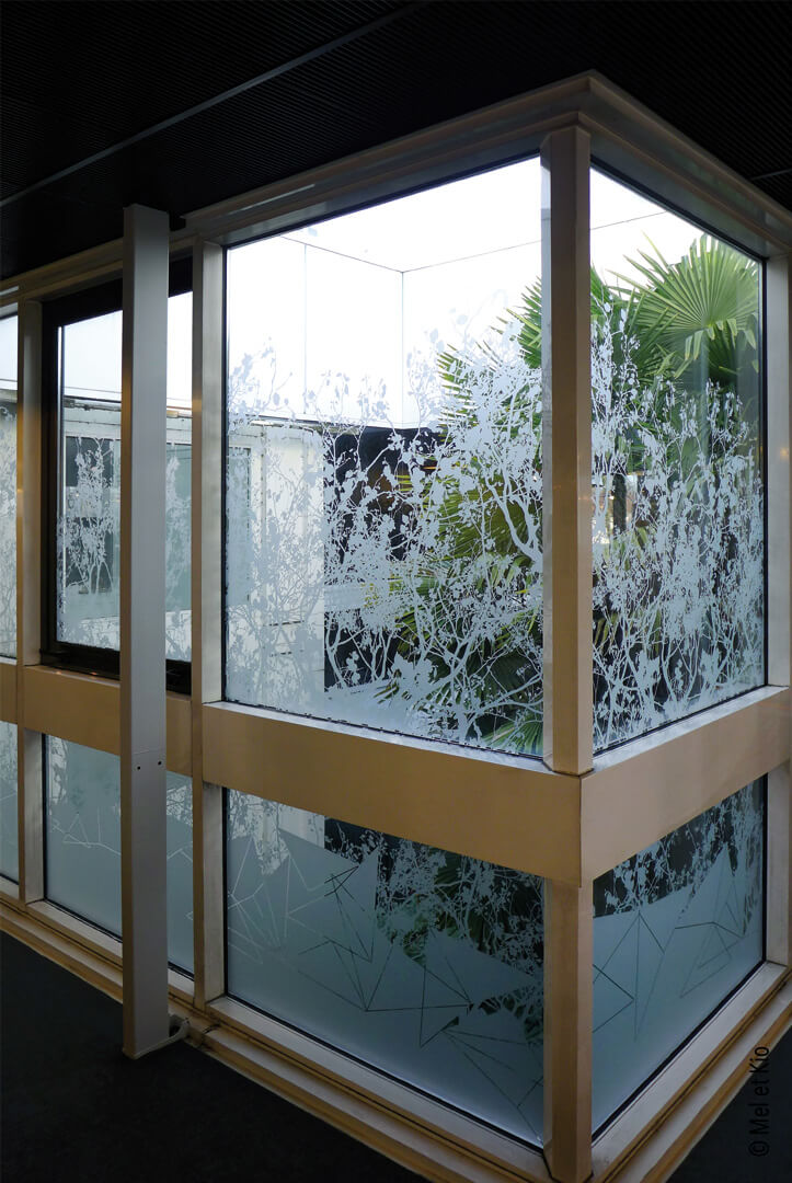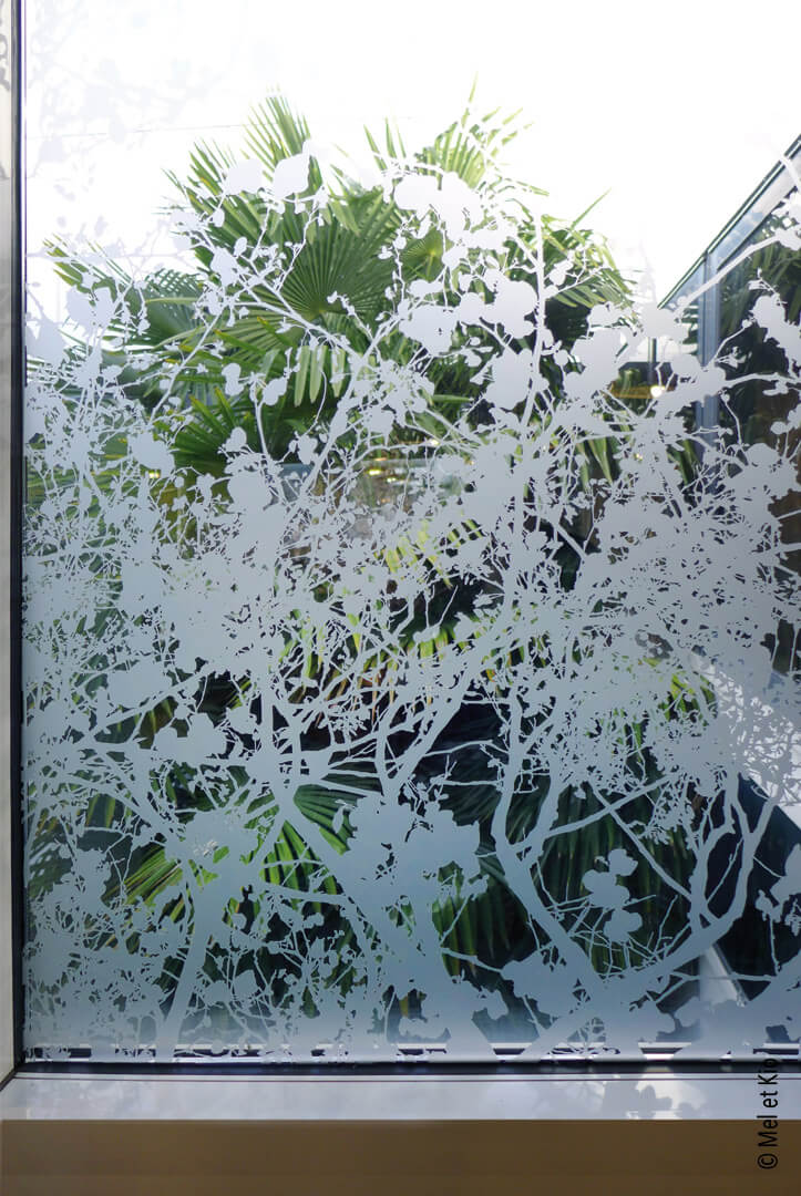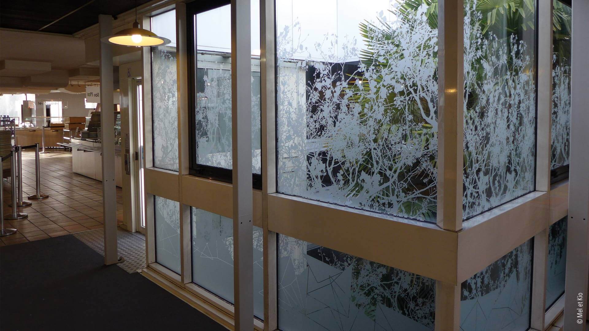 Vitrophanie de dentelle au design végétation pour le restaurant d’entreprise d’Air France