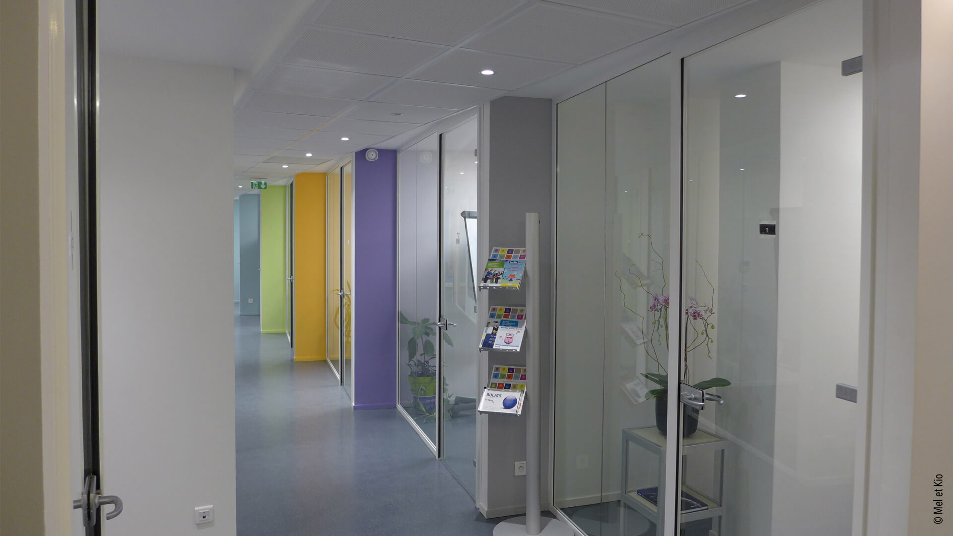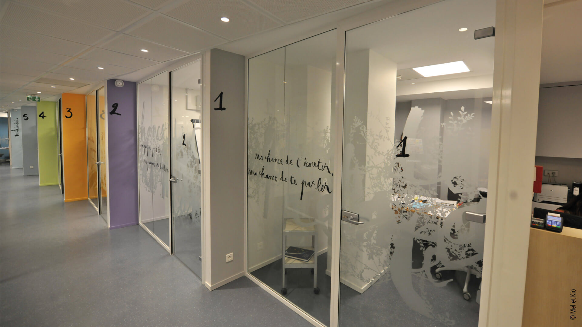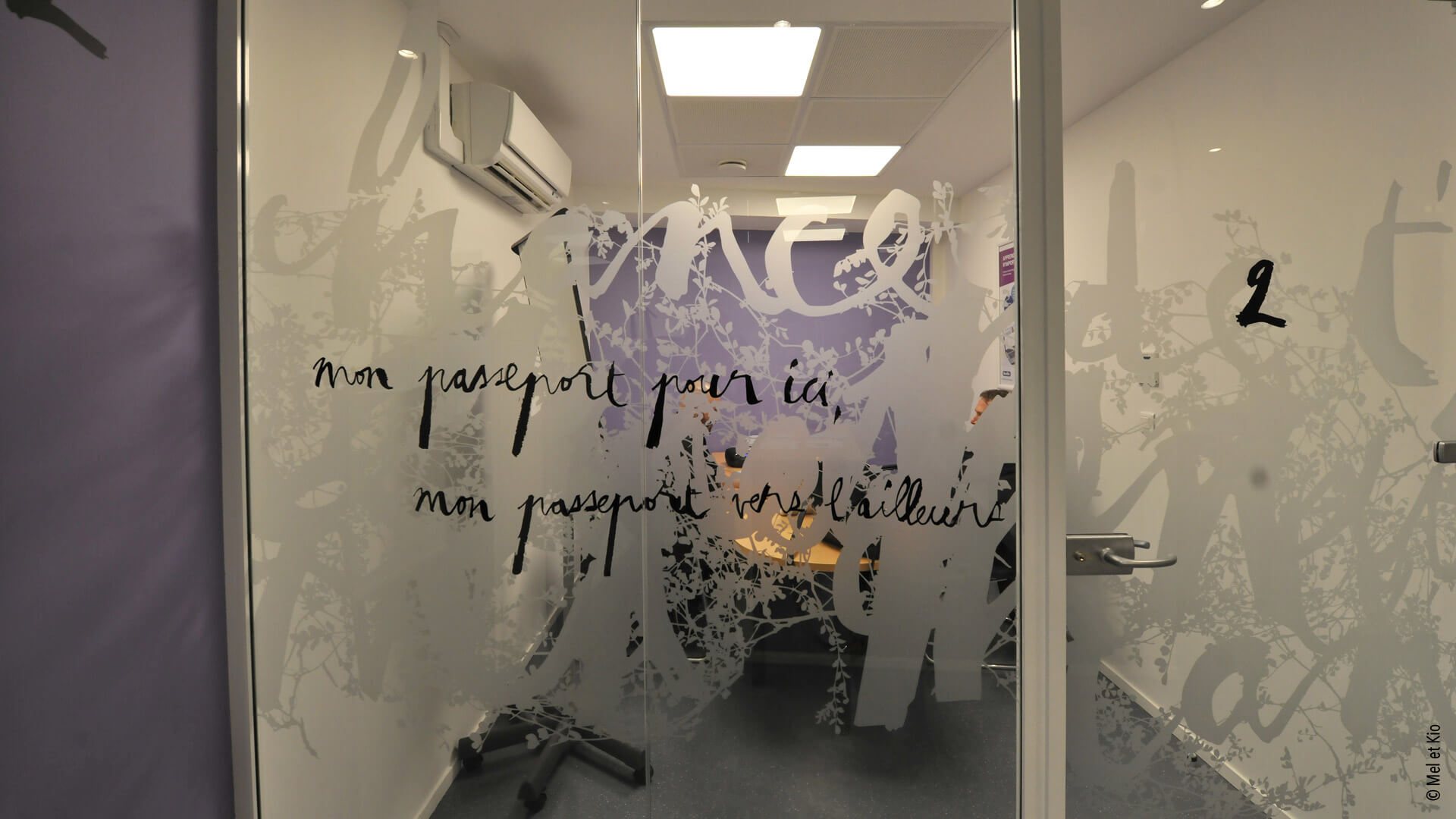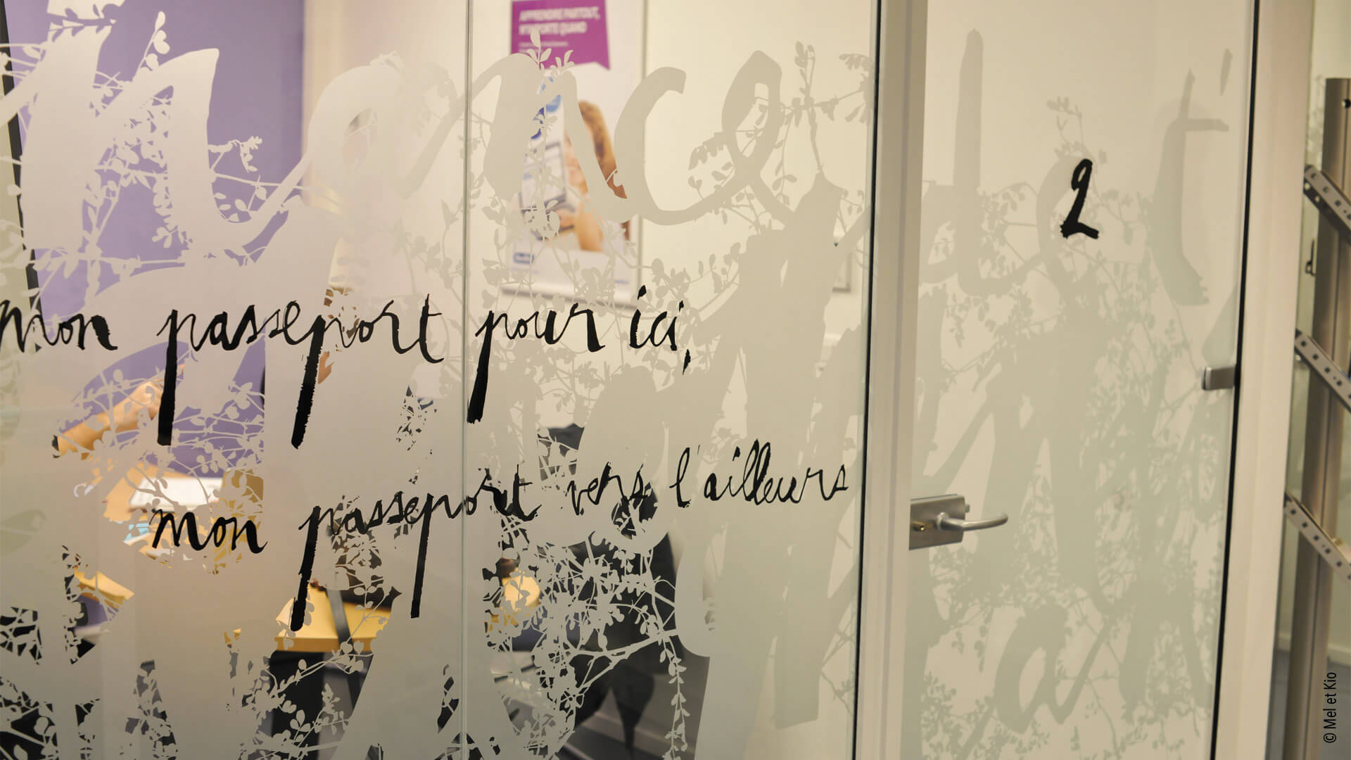 Vitrophanies de cloisons vitrées de bureaux centre de langues